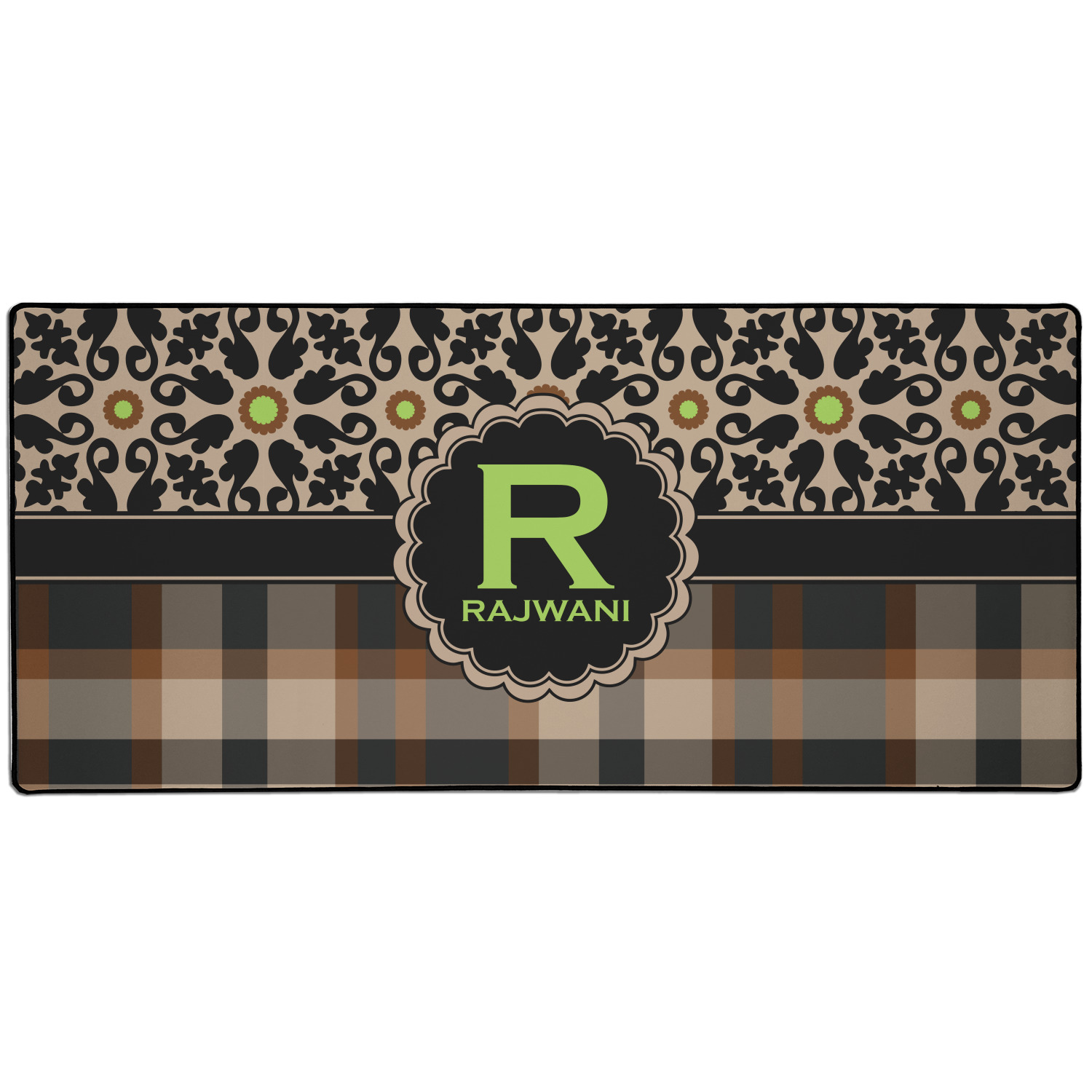 Feminine and masculine collide with this gorgeous design. The top of the design offers a fun girly flair using an abstract pattern of black, brown and lime green against a tan background to create a floral pattern. On the bottom a contrasting plaid design grounds the upper floral pattern.