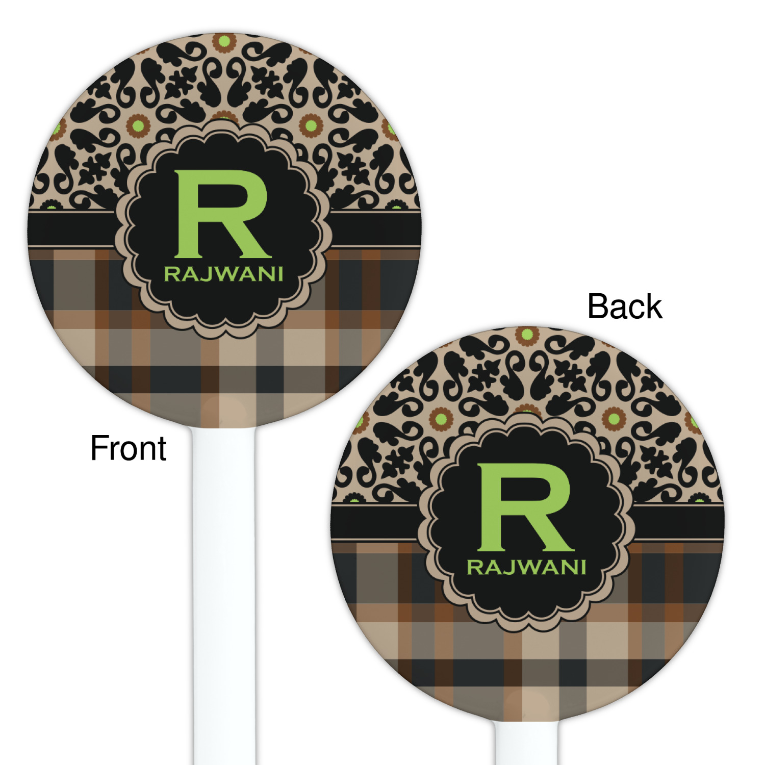 Feminine and masculine collide with this gorgeous design. The top of the design offers a fun girly flair using an abstract pattern of black, brown and lime green against a tan background to create a floral pattern. On the bottom a contrasting plaid design grounds the upper floral pattern.