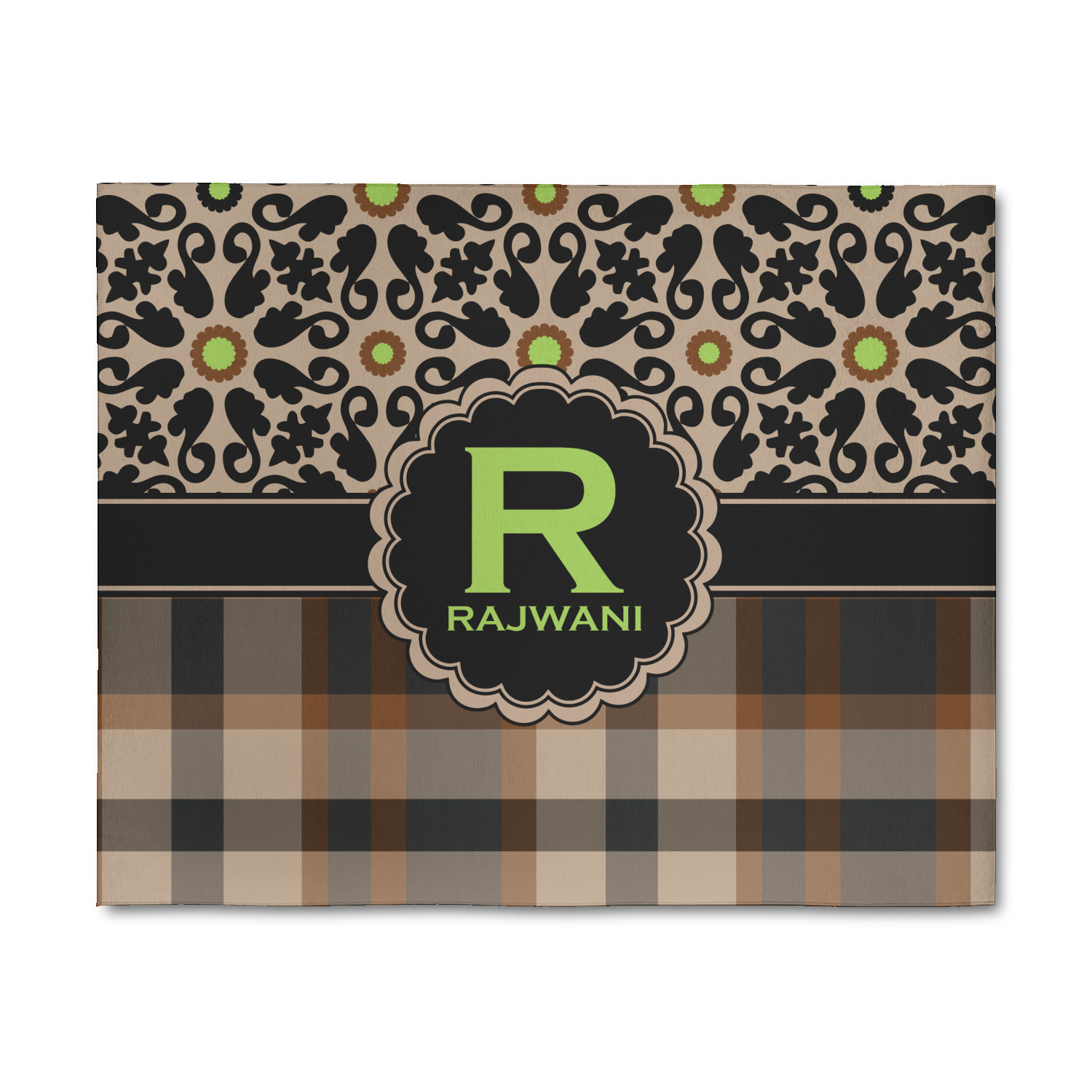 Feminine and masculine collide with this gorgeous design. The top of the design offers a fun girly flair using an abstract pattern of black, brown and lime green against a tan background to create a floral pattern. On the bottom a contrasting plaid design grounds the upper floral pattern.