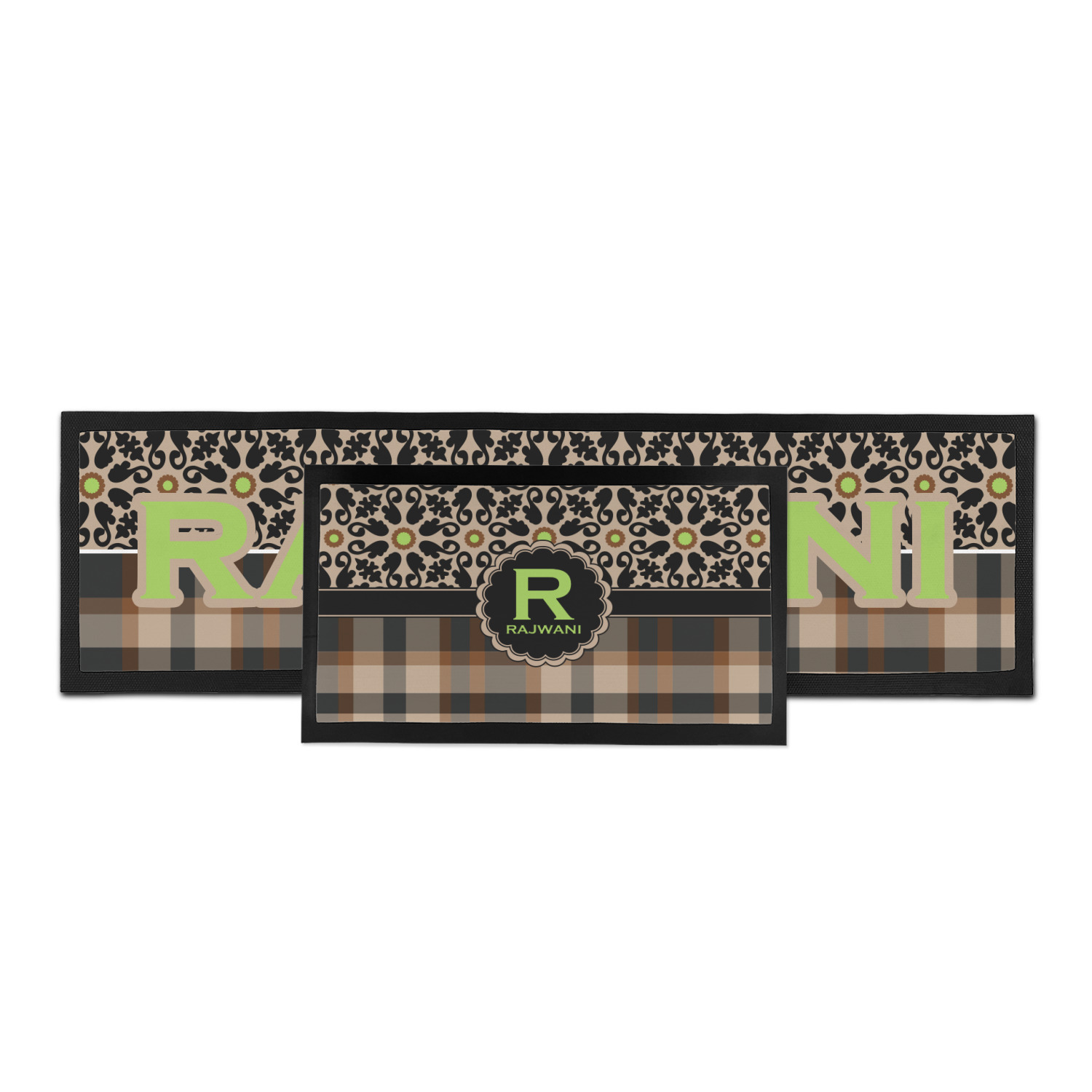 Feminine and masculine collide with this gorgeous design. The top of the design offers a fun girly flair using an abstract pattern of black, brown and lime green against a tan background to create a floral pattern. On the bottom a contrasting plaid design grounds the upper floral pattern.
