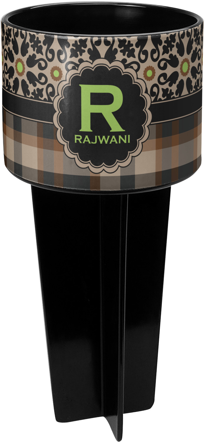 This cup holder has a large stake at its bottom that anchors it to the sand or ground below, while the cup holder rests above the stake. The entire drink holder is made of durable plastic and displays your customization around the cup holder portion. We sell these personalized beach spikers in two different colors: black and white.