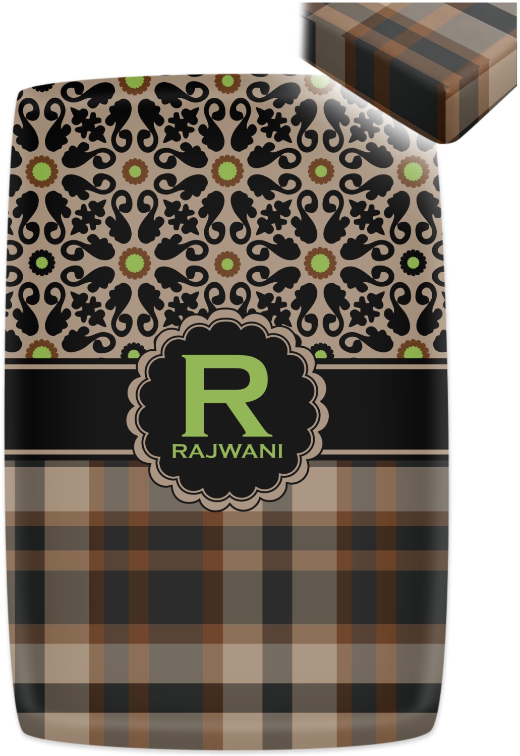 Feminine and masculine collide with this gorgeous design. The top of the design offers a fun girly flair using an abstract pattern of black, brown and lime green against a tan background to create a floral pattern. On the bottom a contrasting plaid design grounds the upper floral pattern.