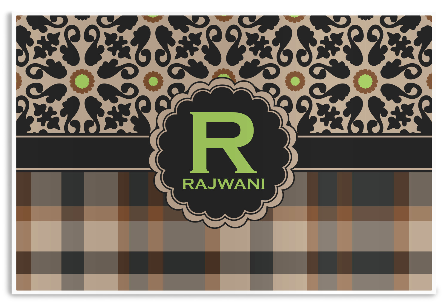 Feminine and masculine collide with this gorgeous design. The top of the design offers a fun girly flair using an abstract pattern of black, brown and lime green against a tan background to create a floral pattern. On the bottom a contrasting plaid design grounds the upper floral pattern.
