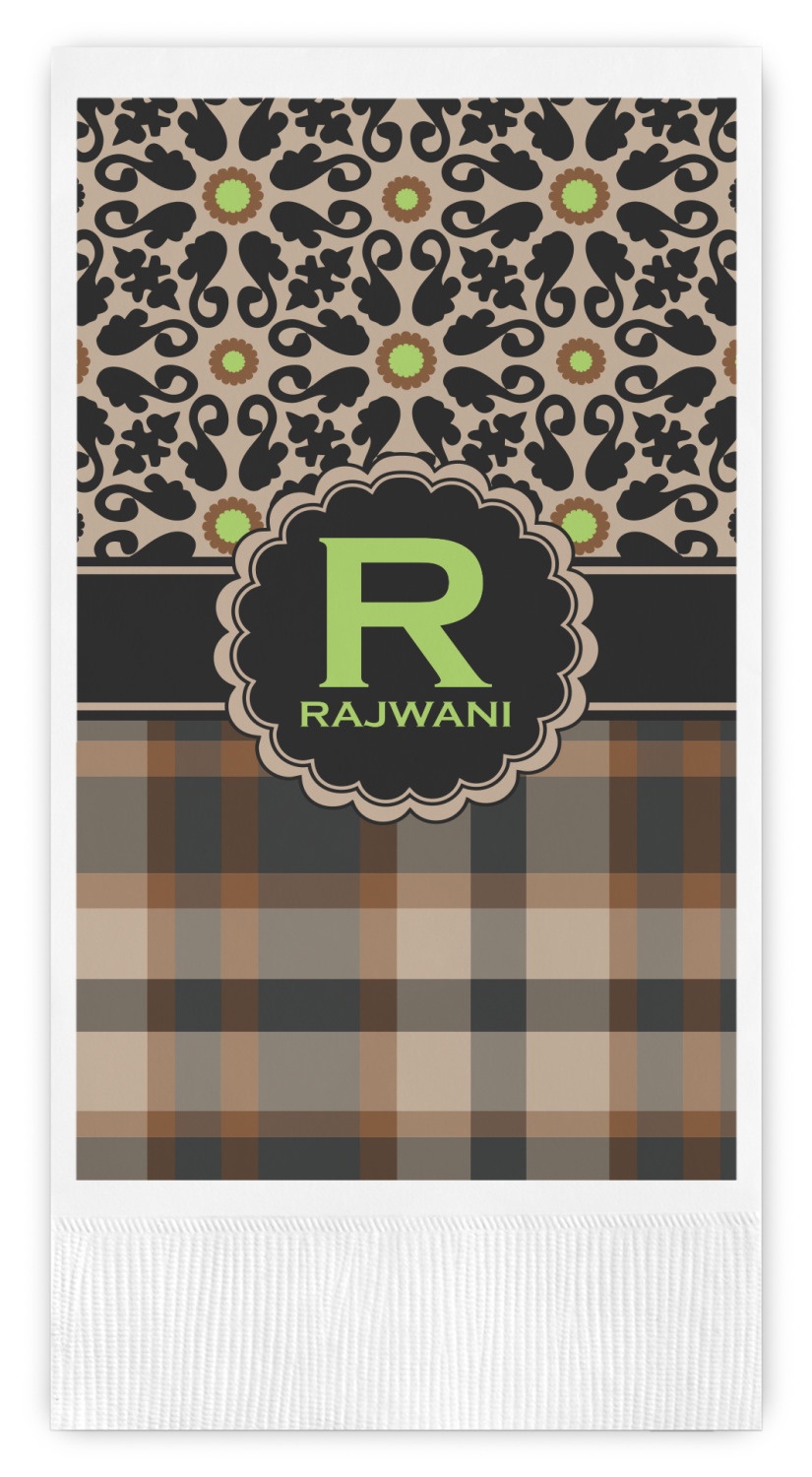 Feminine and masculine collide with this gorgeous design. The top of the design offers a fun girly flair using an abstract pattern of black, brown and lime green against a tan background to create a floral pattern. On the bottom a contrasting plaid design grounds the upper floral pattern.
