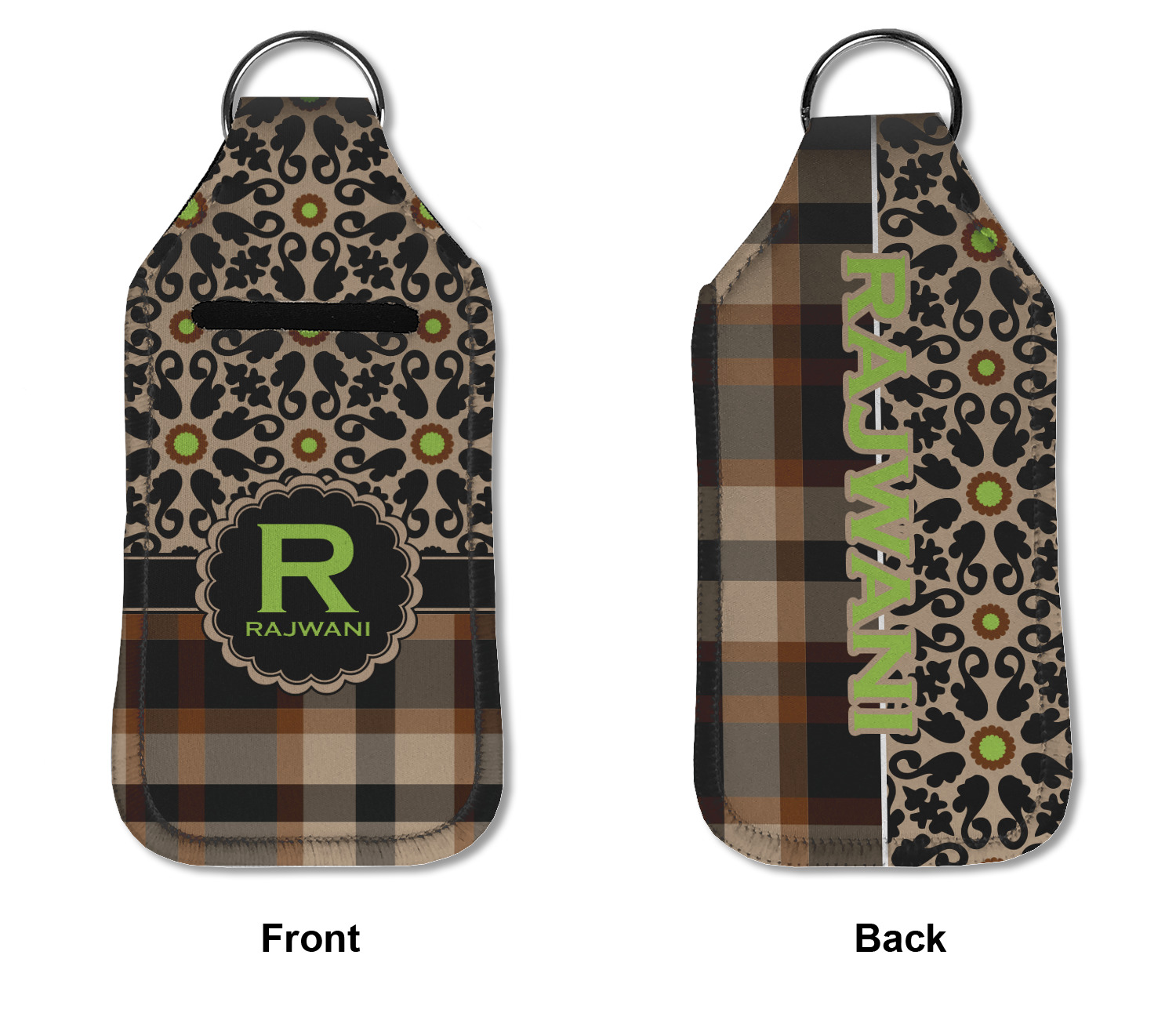 Each hand sanitizer holder comes with its own empty travel-sized, refillable hand sanitizer sure to fit snug in your customized sanitizer case! Our hand sanitizer cases are a durable, yet soft neoprene material sure to last any daily activities or travel agenda. Customize and personalize a hand sanitizer bottle holder with one of our two sizes - small (4.25" x 2.25") or large (5.5" x 2.5"). Each travel sanitizer holder comes with a keyring for attachment on bags, keys, or more!