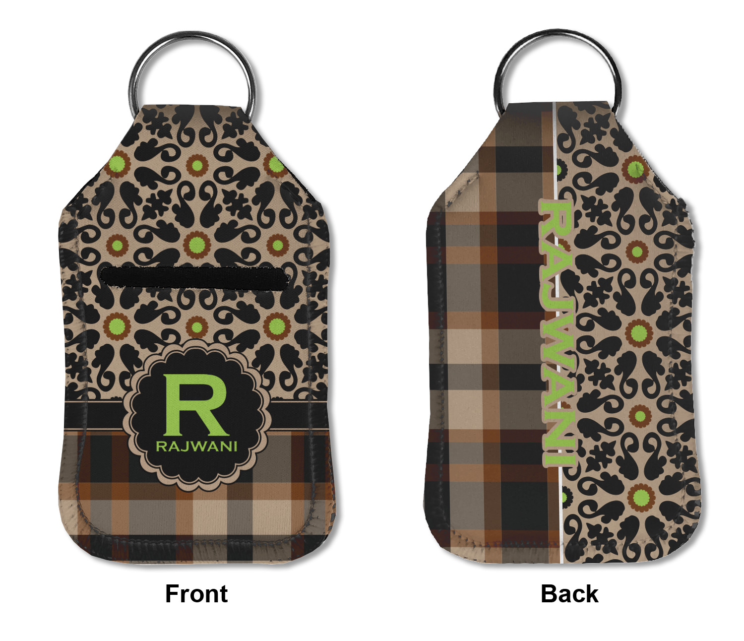 Each hand sanitizer holder comes with its own empty travel-sized, refillable hand sanitizer sure to fit snug in your customized sanitizer case! Our hand sanitizer cases are a durable, yet soft neoprene material sure to last any daily activities or travel agenda. Customize and personalize a hand sanitizer bottle holder with one of our two sizes - small (4.25" x 2.25") or large (5.5" x 2.5"). Each travel sanitizer holder comes with a keyring for attachment on bags, keys, or more!