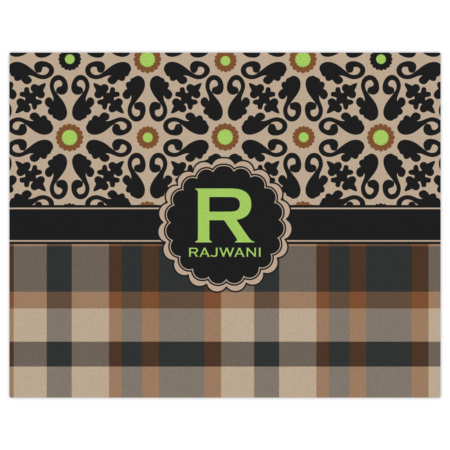 Feminine and masculine collide with this gorgeous design. The top of the design offers a fun girly flair using an abstract pattern of black, brown and lime green against a tan background to create a floral pattern. On the bottom a contrasting plaid design grounds the upper floral pattern.
