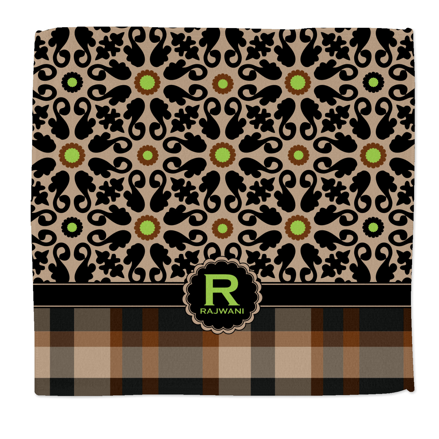 Feminine and masculine collide with this gorgeous design. The top of the design offers a fun girly flair using an abstract pattern of black, brown and lime green against a tan background to create a floral pattern. On the bottom a contrasting plaid design grounds the upper floral pattern.