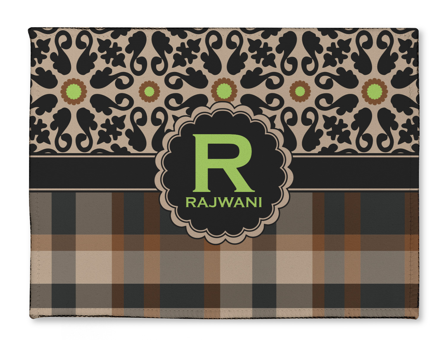 Feminine and masculine collide with this gorgeous design. The top of the design offers a fun girly flair using an abstract pattern of black, brown and lime green against a tan background to create a floral pattern. On the bottom a contrasting plaid design grounds the upper floral pattern.