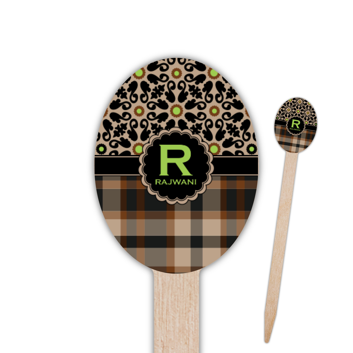 Feminine and masculine collide with this gorgeous design. The top of the design offers a fun girly flair using an abstract pattern of black, brown and lime green against a tan background to create a floral pattern. On the bottom a contrasting plaid design grounds the upper floral pattern.