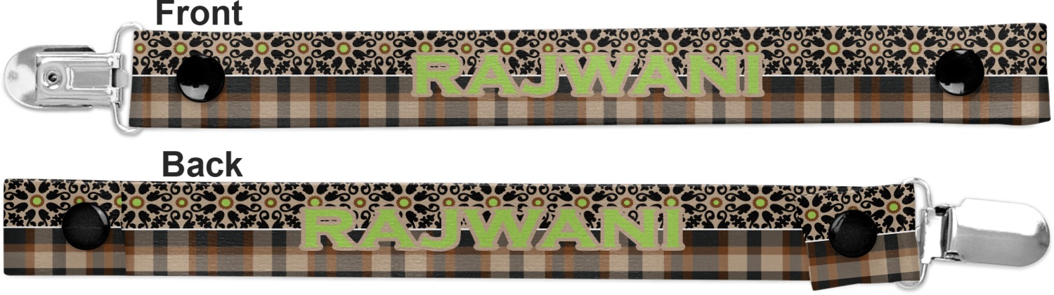 This personalized pacifier clip is the ideal size and measures at approximately 7.5 inches in length, when either end is snapped closed. On one end, you'll find a snap button. This button of your baby's pacifier holder is what can be attached to their pacifier to hold is securely in place. Simply open the snap, slip it through the pacifier opening, and snap it back into place. On the opposite end of this baby pacifier holder, you'll find a metal clip that can secure to a baby's collar or sleeve. This clip ensures that the strap stays in place, and that your baby's pacifier is always on hand.