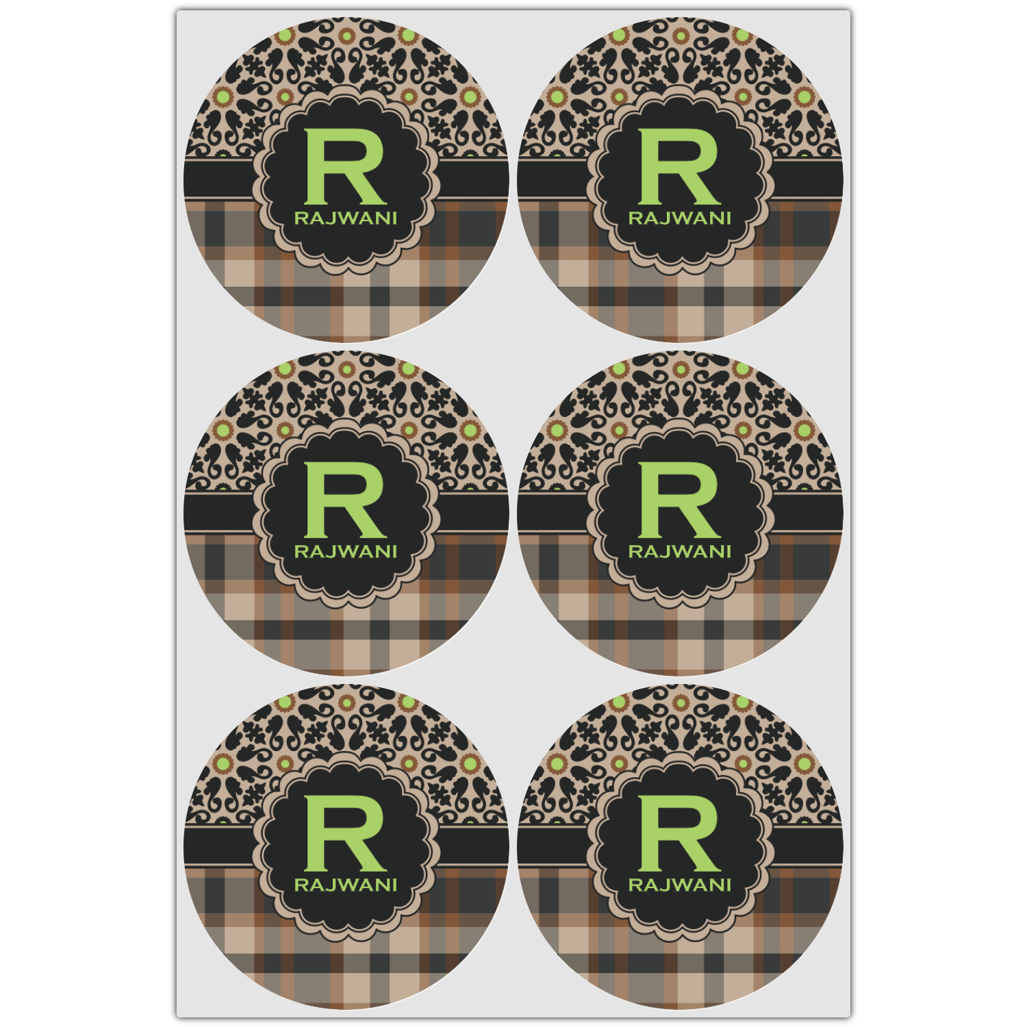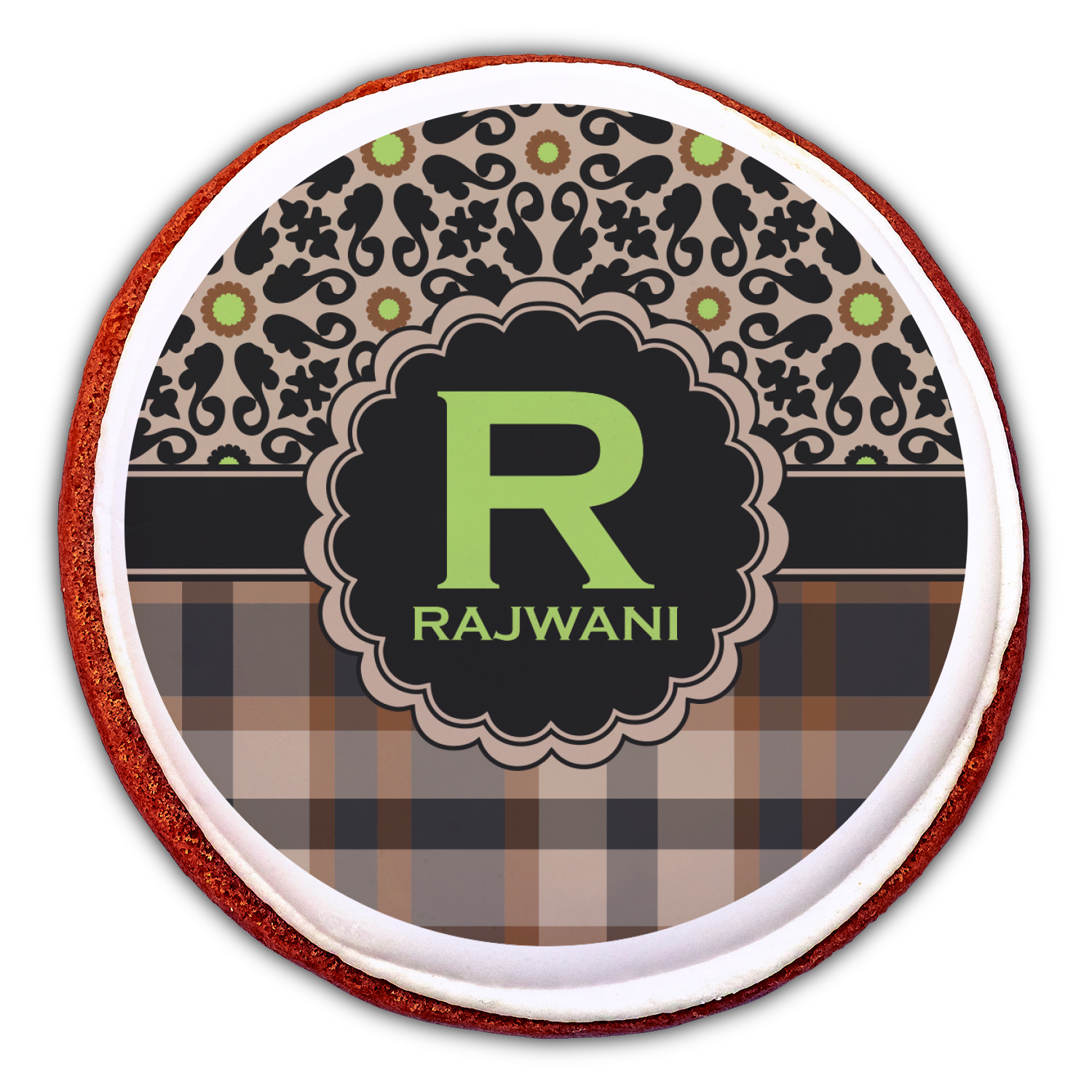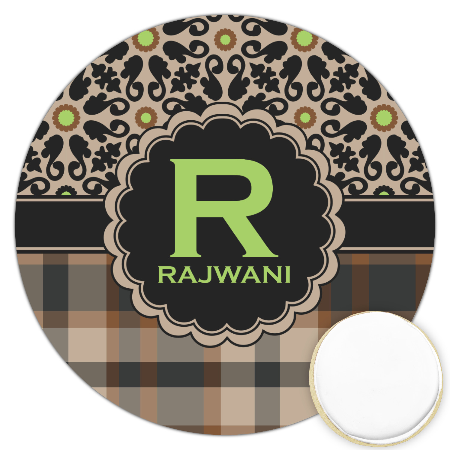 Feminine and masculine collide with this gorgeous design. The top of the design offers a fun girly flair using an abstract pattern of black, brown and lime green against a tan background to create a floral pattern. On the bottom a contrasting plaid design grounds the upper floral pattern.