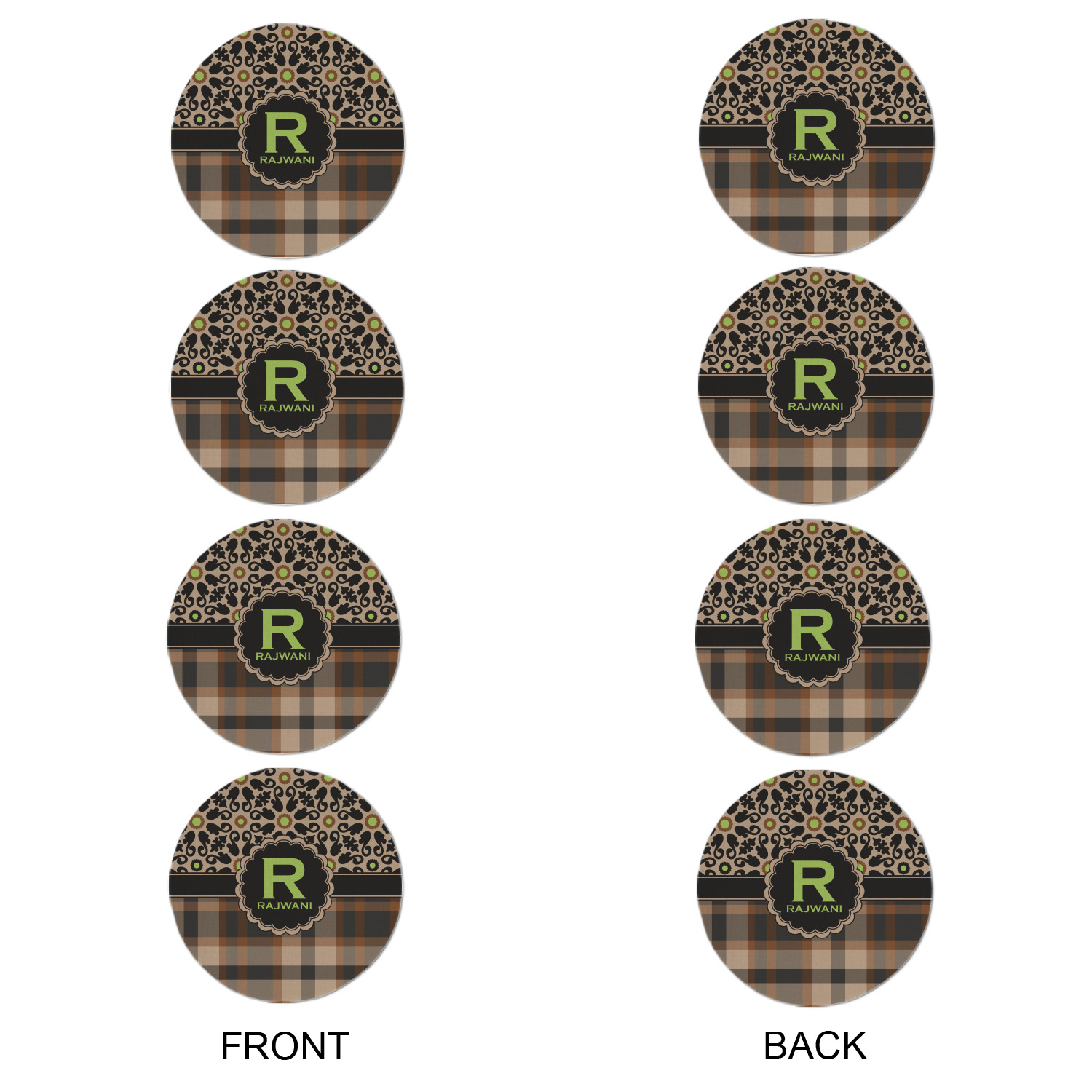 Feminine and masculine collide with this gorgeous design. The top of the design offers a fun girly flair using an abstract pattern of black, brown and lime green against a tan background to create a floral pattern. On the bottom a contrasting plaid design grounds the upper floral pattern.