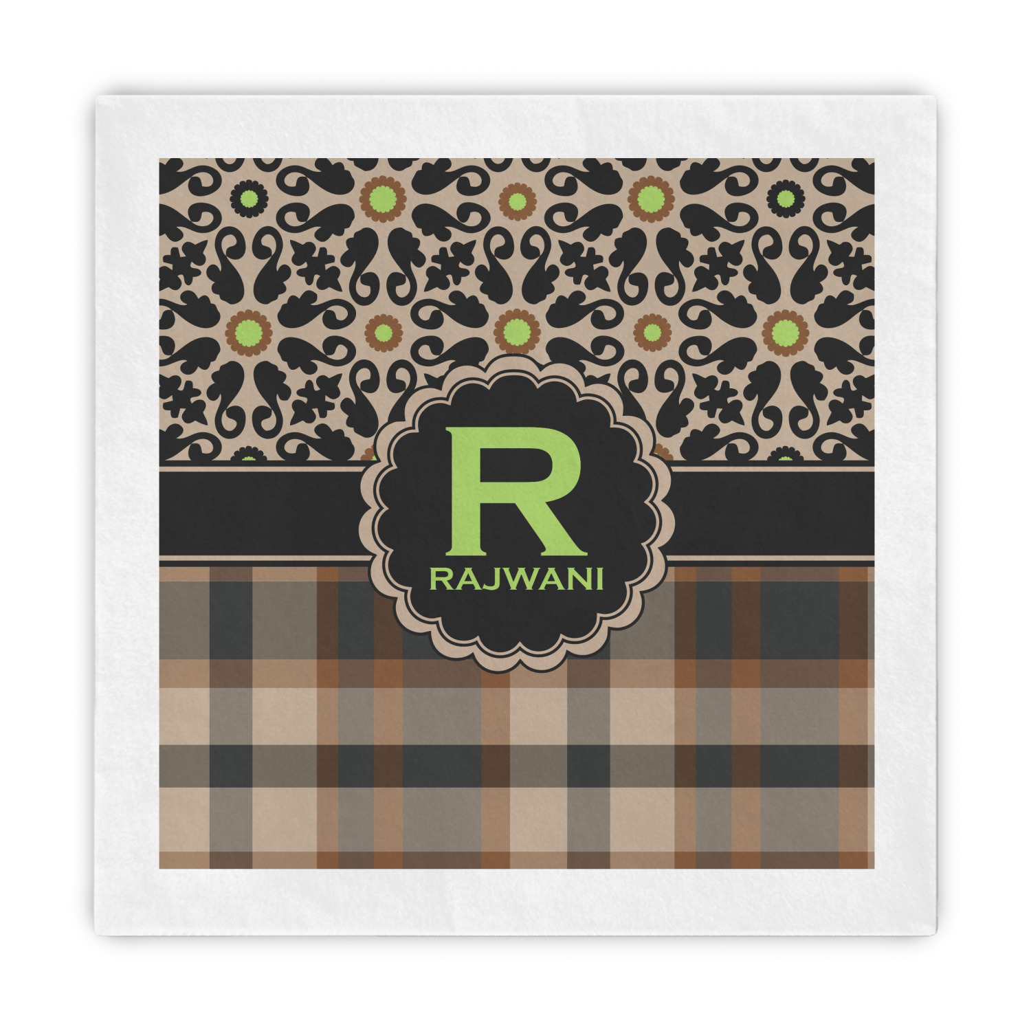 Feminine and masculine collide with this gorgeous design. The top of the design offers a fun girly flair using an abstract pattern of black, brown and lime green against a tan background to create a floral pattern. On the bottom a contrasting plaid design grounds the upper floral pattern.
