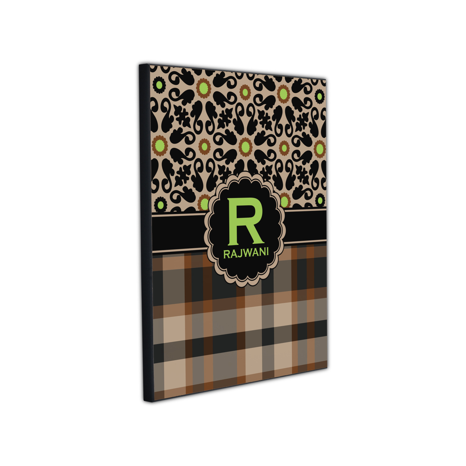 Feminine and masculine collide with this gorgeous design. The top of the design offers a fun girly flair using an abstract pattern of black, brown and lime green against a tan background to create a floral pattern. On the bottom a contrasting plaid design grounds the upper floral pattern.