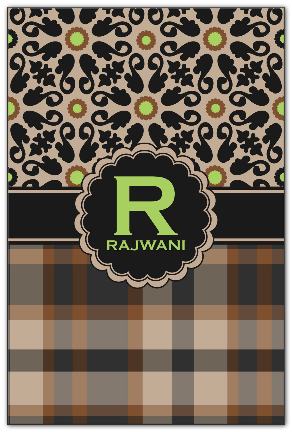 Feminine and masculine collide with this gorgeous design. The top of the design offers a fun girly flair using an abstract pattern of black, brown and lime green against a tan background to create a floral pattern. On the bottom a contrasting plaid design grounds the upper floral pattern.