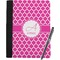 These personalized padfolios are made from a black, polyester microfiber and features a standard, 50-page notepad. However, these black padfolios can accommodate a pad with up to 100 pages. This model also features a slot pocket for any loose sheets of paper, small pockets for business cards, and an elastic band to secure a pen. We print your personalization across the front of this notepad portfolio in bright, vibrant color. These padfolios come in 2 sizes, Medium - approximately 10.25" x 8" for 5" x 8" paper and Large - approximately 12.5" x 8.5" for 8.5" x 11" paper.