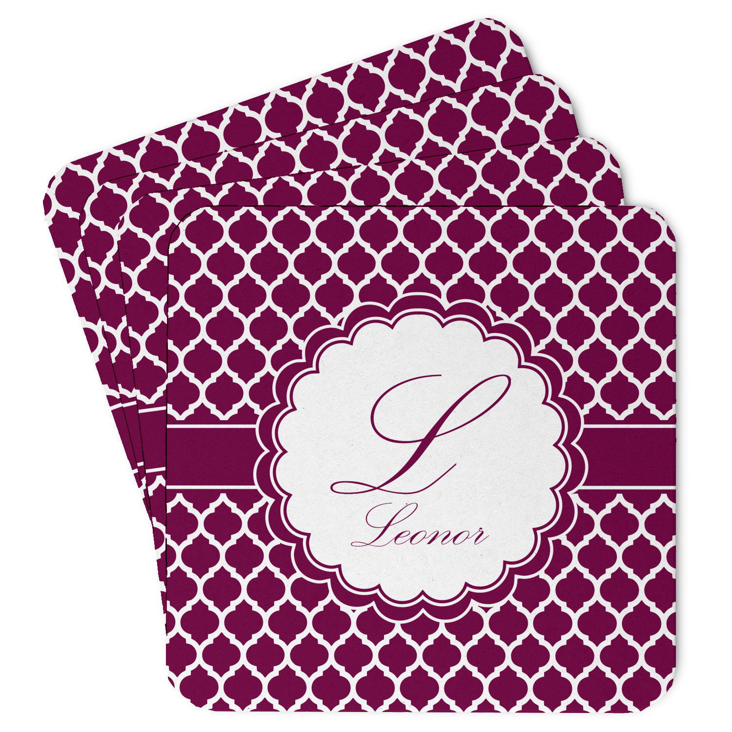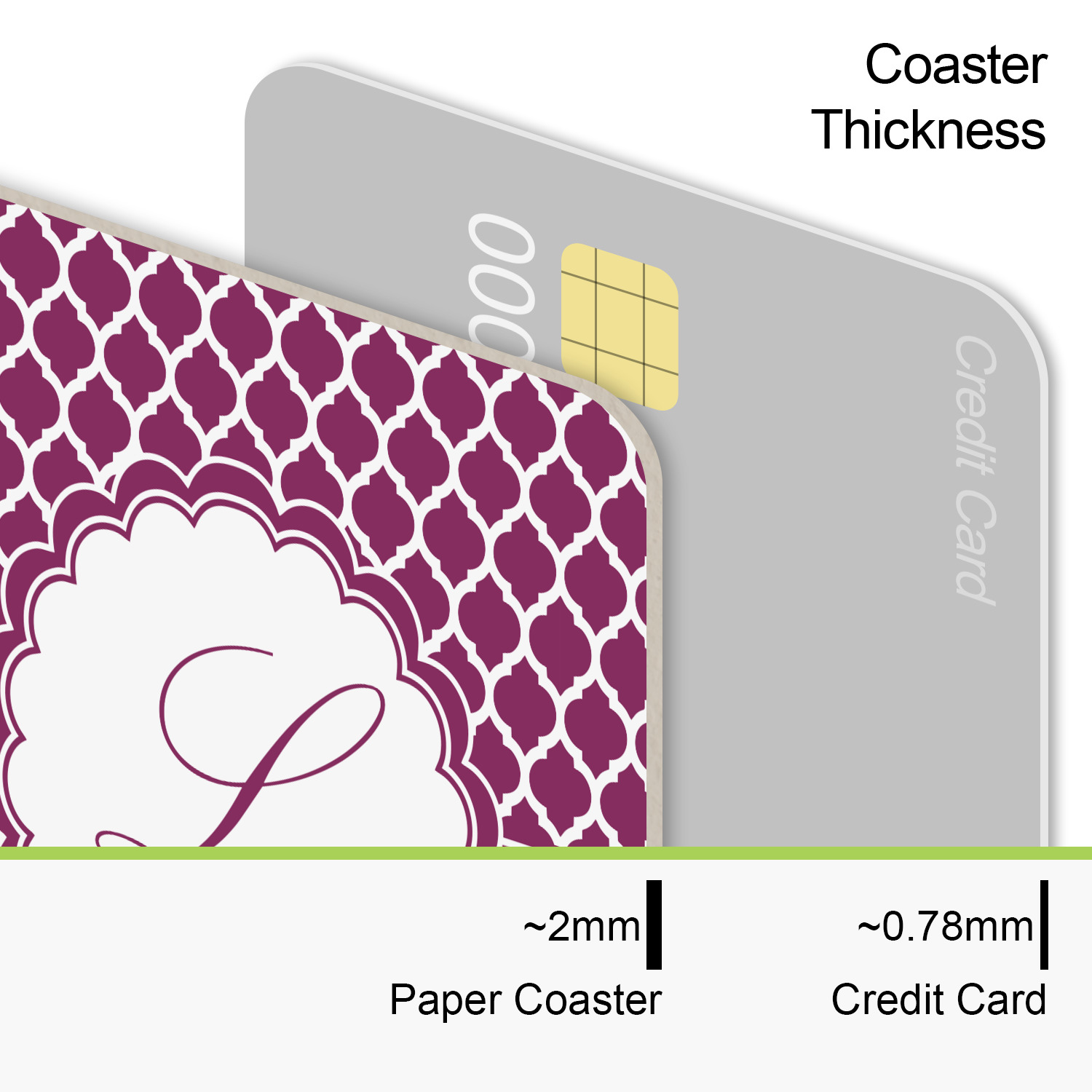 These coasters are perfectly sized for just about any drink being a 4"in square. The paper construction is a thick heavyweight 80 point pulpboard perfect for absorbing the condensation on the outside of your glass.
