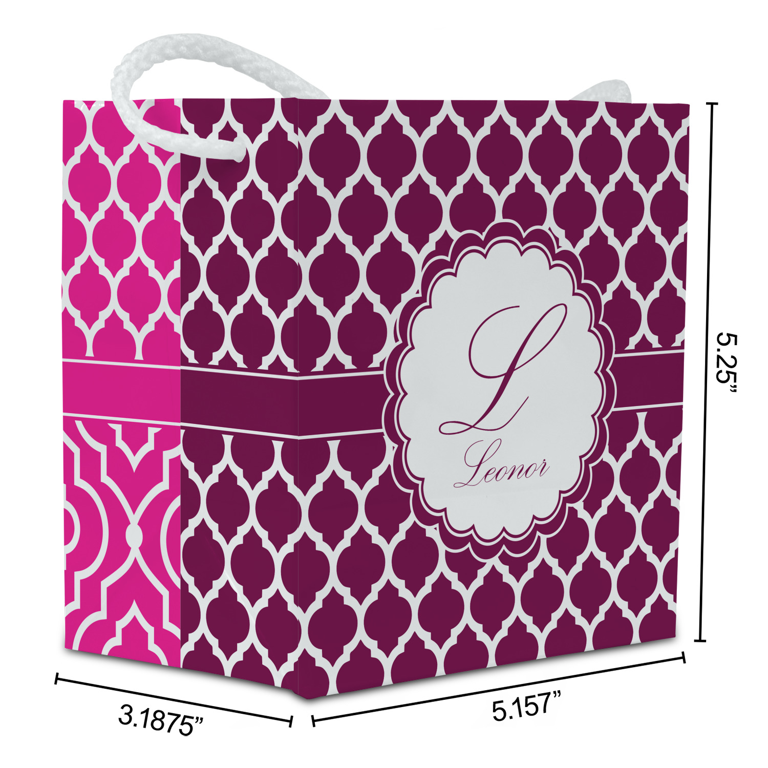 These party favor bags are approx. 5.25" tall x 5.25" wide and 3" deep. They are perfectly sized for party favors such as customized ornaments, specialty chocolates or cookies, etc. The bags will also fit multiple small favors.