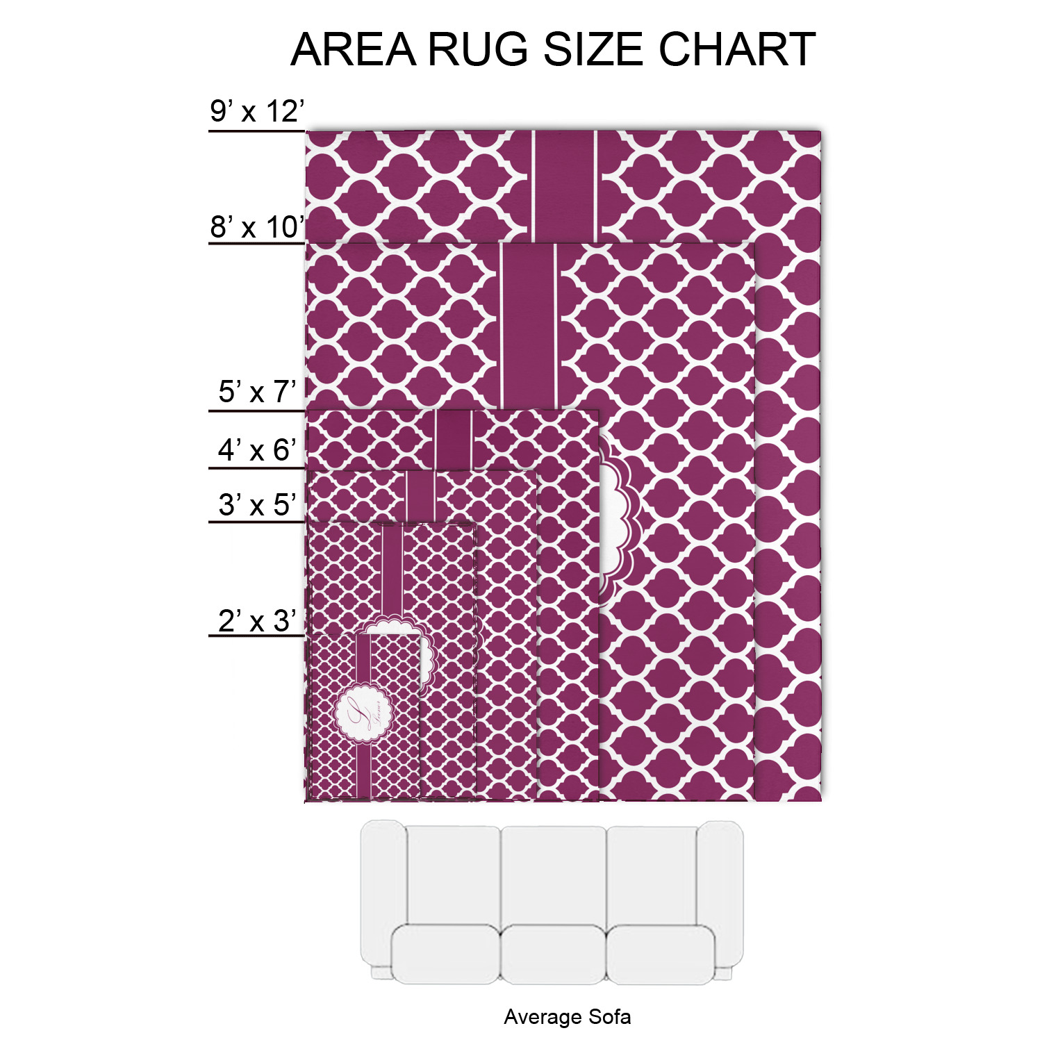 Our area rugs are available in multiple sizes; they are listed below: