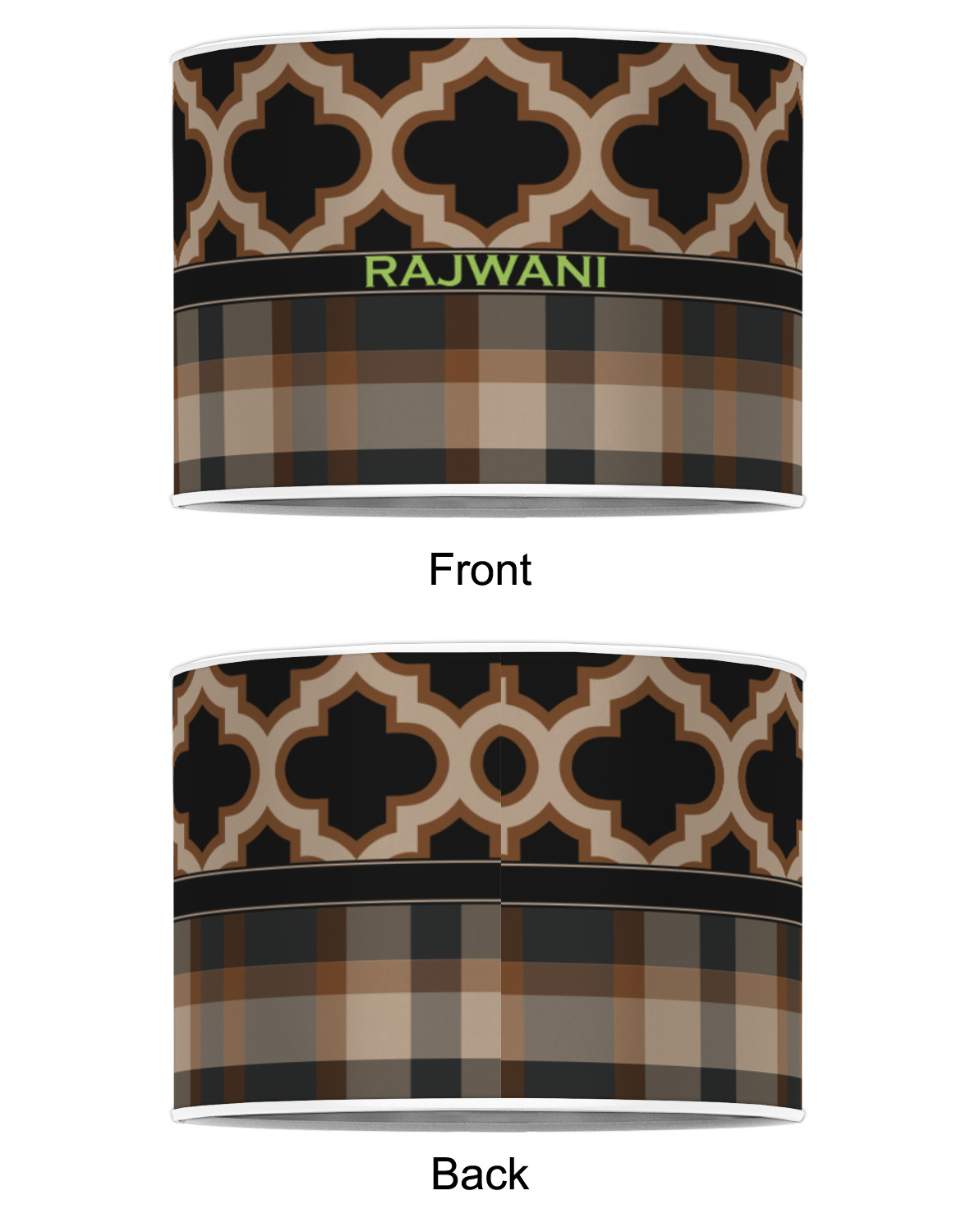Old world and modern collide to produce this gorgeous design. The top of this design brings to life a tradition Moroccan pattern using the modern colors of brown, tan and black. The bottom half is a beautiful plaid design using the same colors from the Moroccan pattern.