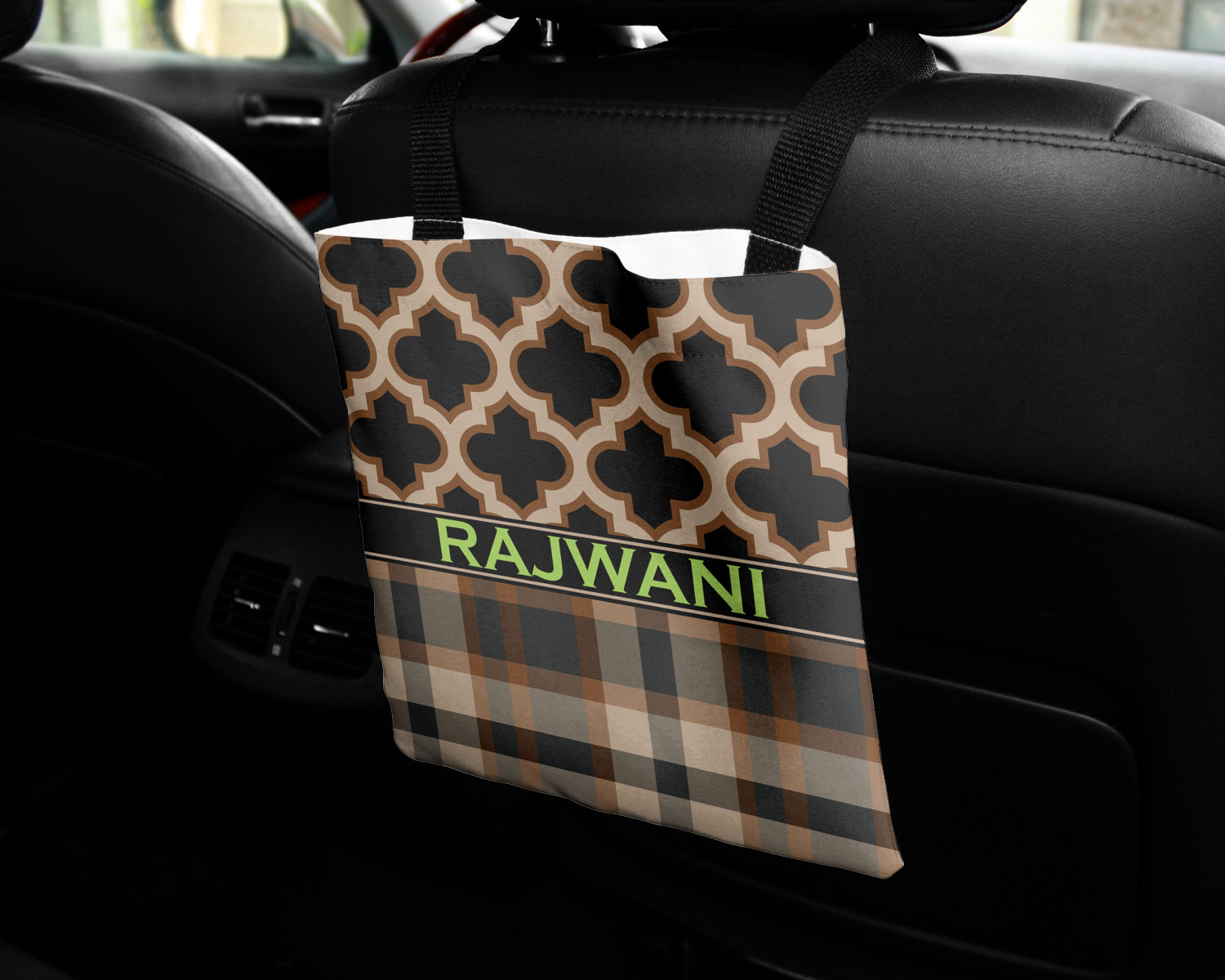 These car back seat organizers are sturdy tote-like bags, fabricated from a robust polyester, and features a single handle on the back side. The strap features an attachable velcro for easy attachment to headrests, grocery carts, car seats, and more. Simply undo the velcro, loop the strap around the headrest, reattach the velcro, and let the organizer hang from the front seat. These car organizers are the perfect means of increasing your backseat's legroom, while storing multiple items in one place for better accessibility. Each car back seat organizer measures at 10 by 10 inches, and features your personalized design printed across its front and back.