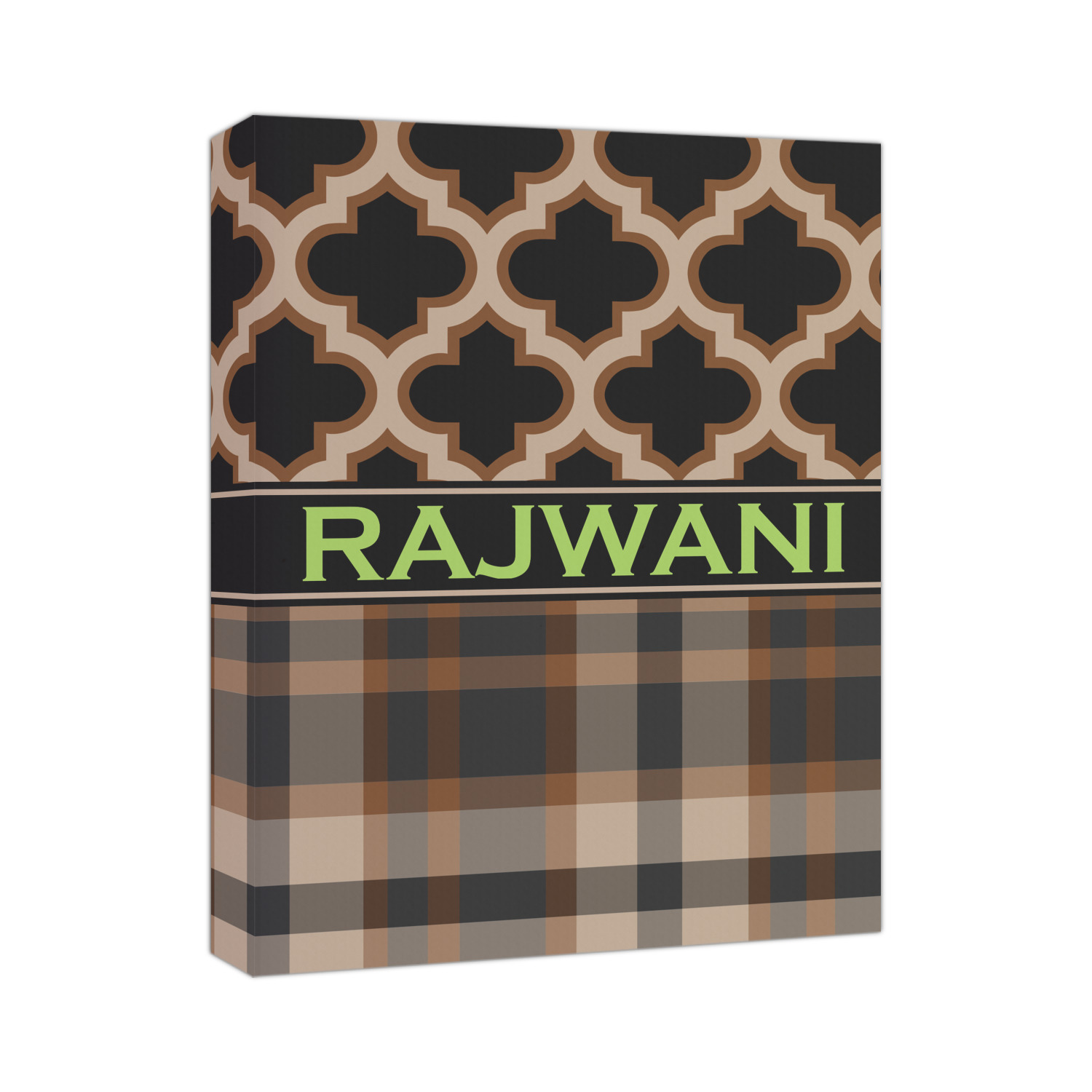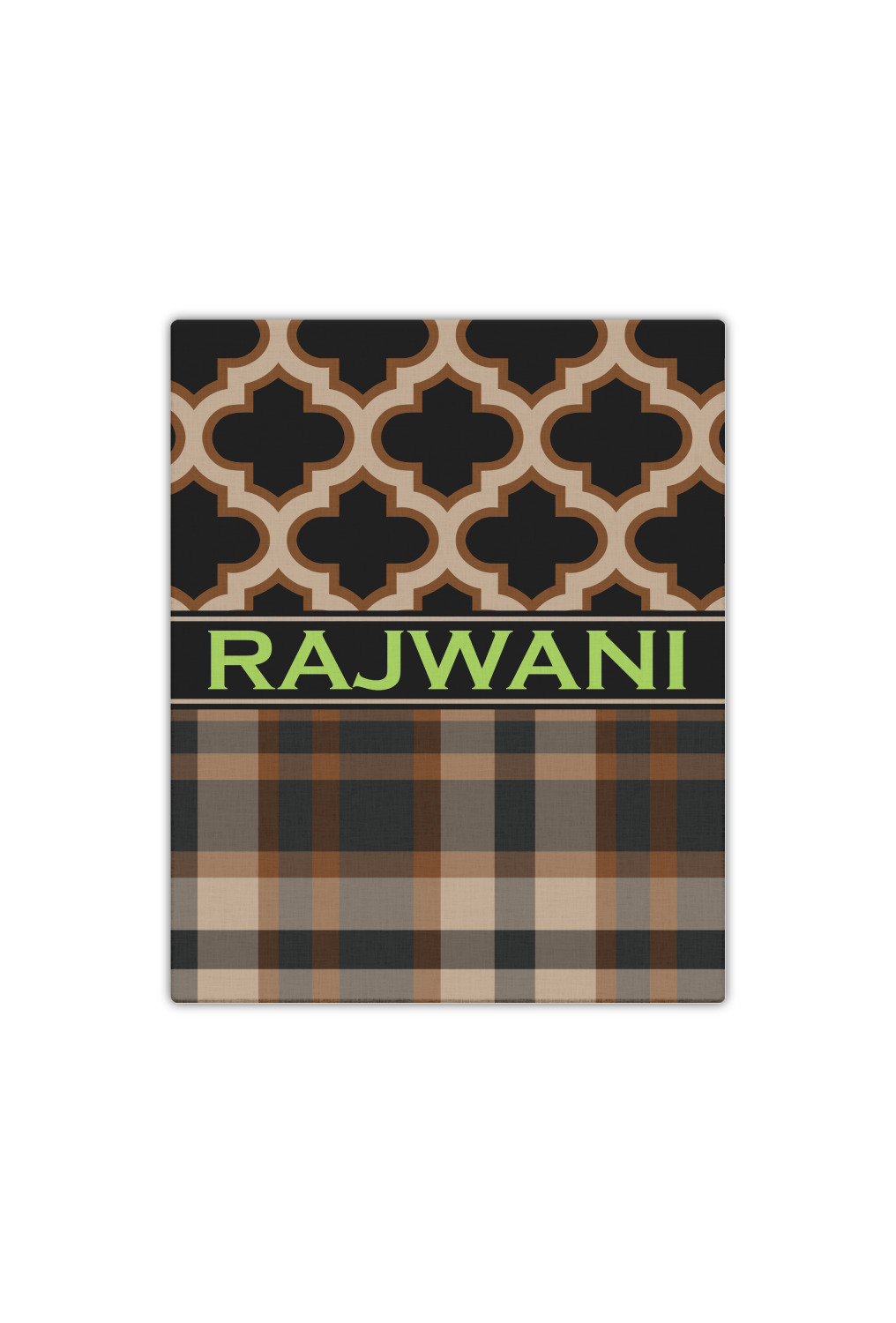 Old world and modern collide to produce this gorgeous design. The top of this design brings to life a tradition Moroccan pattern using the modern colors of brown, tan and black. The bottom half is a beautiful plaid design using the same colors from the Moroccan pattern.