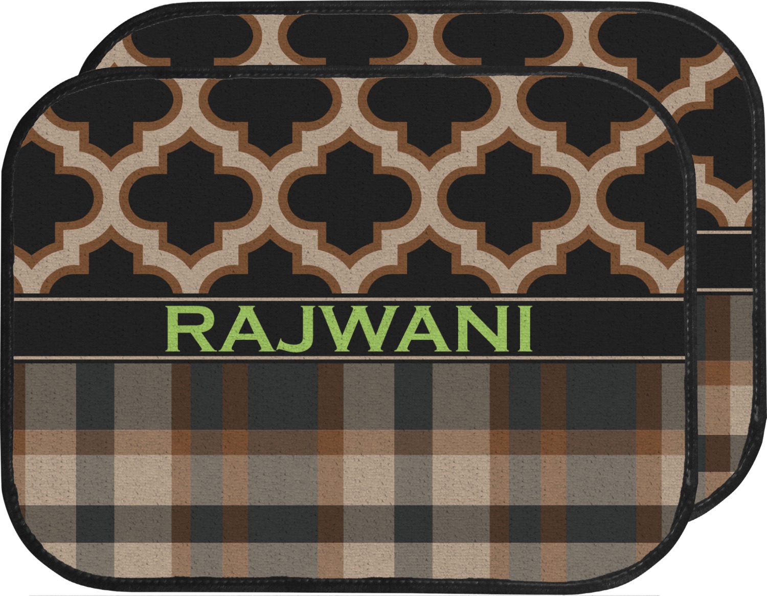 We craft our auto floor mats mats from polyester, apply a black finish to the edges, and lined at the bottom to prevent slippage. These mats protect your floors from grass, mud, and any accidental spills. We display your personalized design on the front face of each mat. The sizes of these car floor liners are standardized to provide a versatile fit for all vehicles. The front rows car mats measure at 17 by 26.5 inches, while the back rows measure at 17 by 13 inches. We sell three packages of car floor mats. You can purchase a pair of front row car mats, a pair of back row car mats, or a set of front row and back row car mats. To make an informed purchase, we recommend measuring the surface area of your car floors.