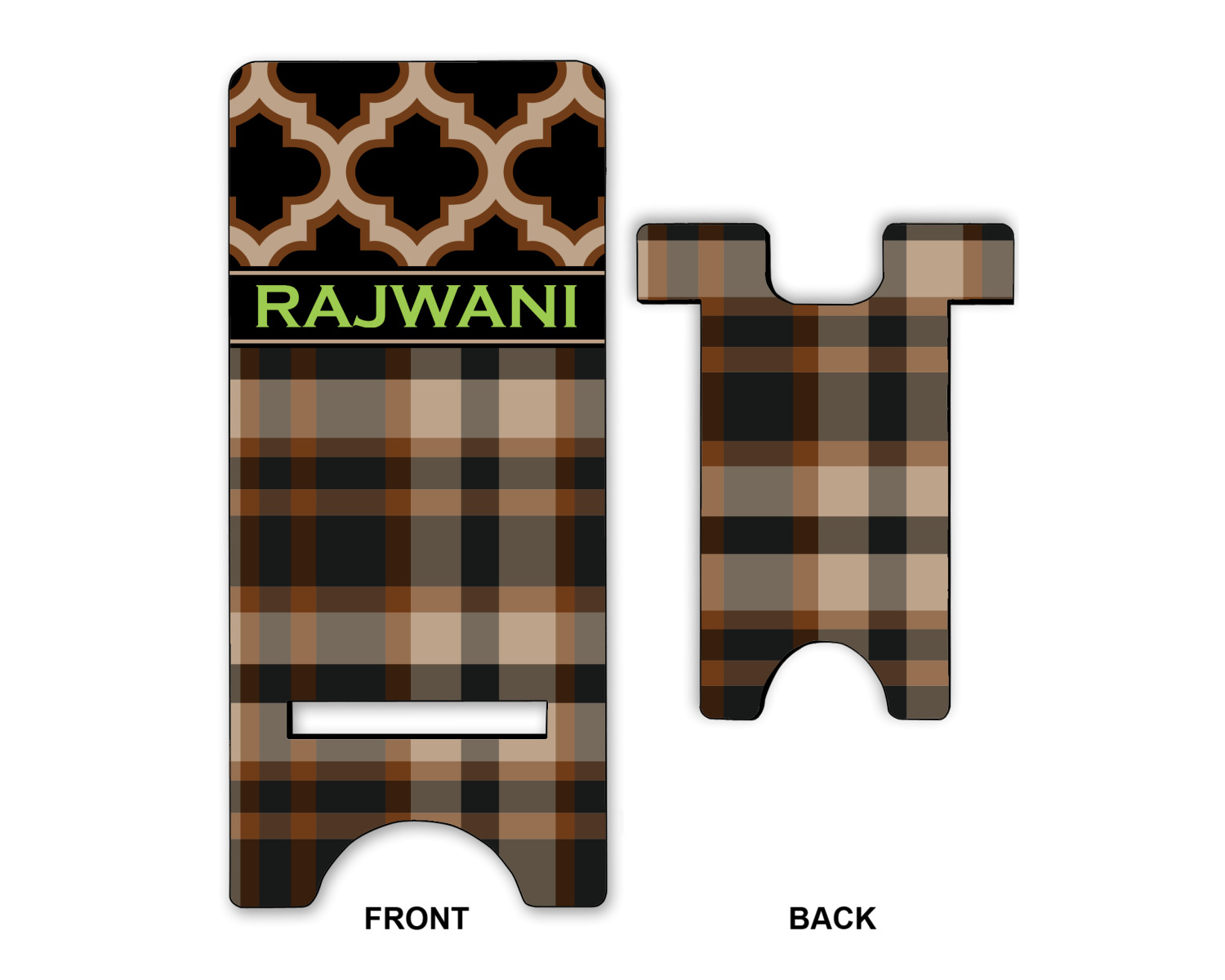 These cell phone holders are comprised of two hardboard pieces, that lock into and steady one another. The bottom part of the mobile phone stand is spacious enough to support both your phone and your charger, while it is not in use. We print your customization atop the face of this stand, while the remaining sides are a sophisticated, black color.