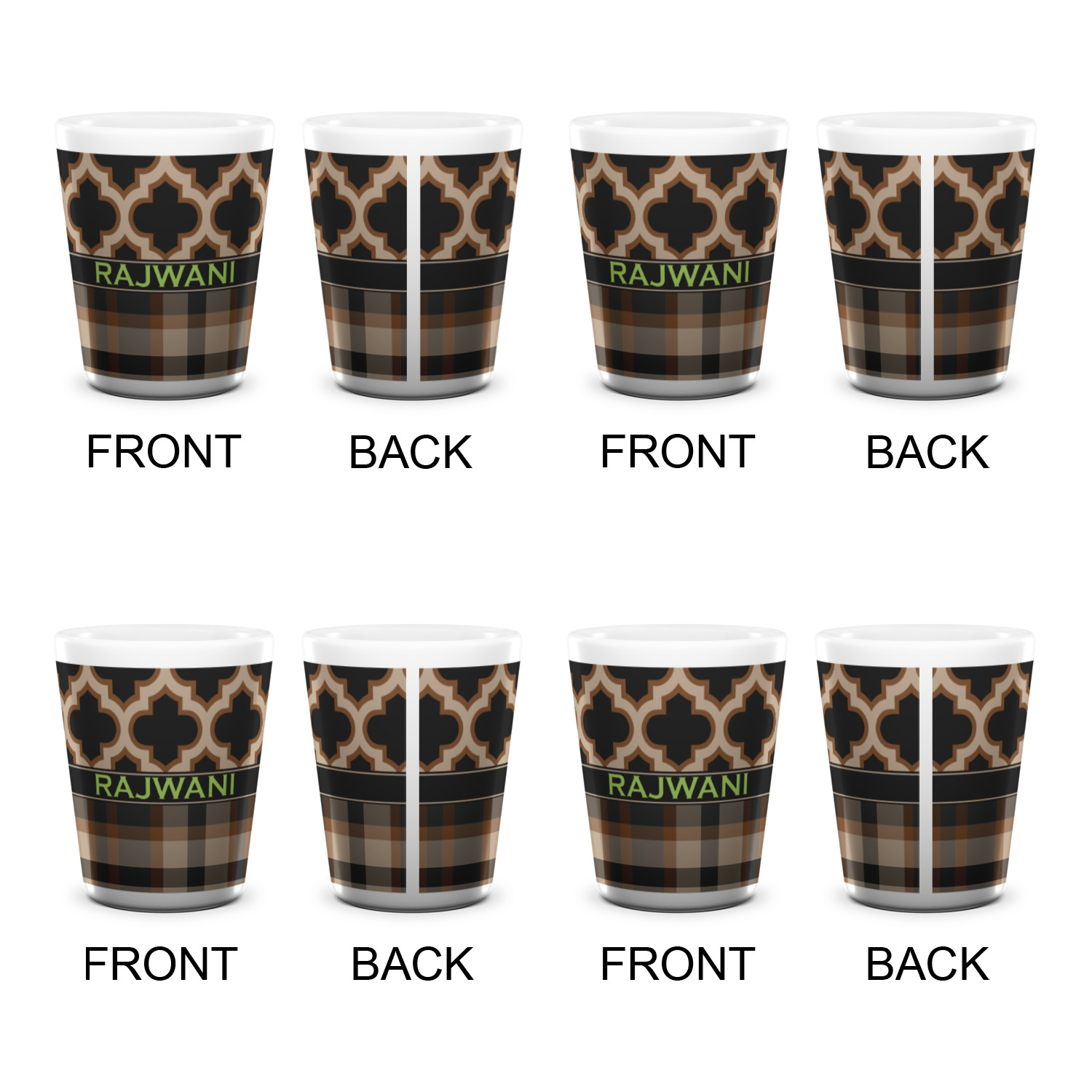 Made from ceramic these shot glasses are printed in full color with the design of your choice. These are a standard 1.5oz size and stand 2.25" tall. Available in a full white ceramic or a two-tone with a black color inside the shot glass. Buy a single or a set of 4, all of which can be designed separately to get you just what you want and need.