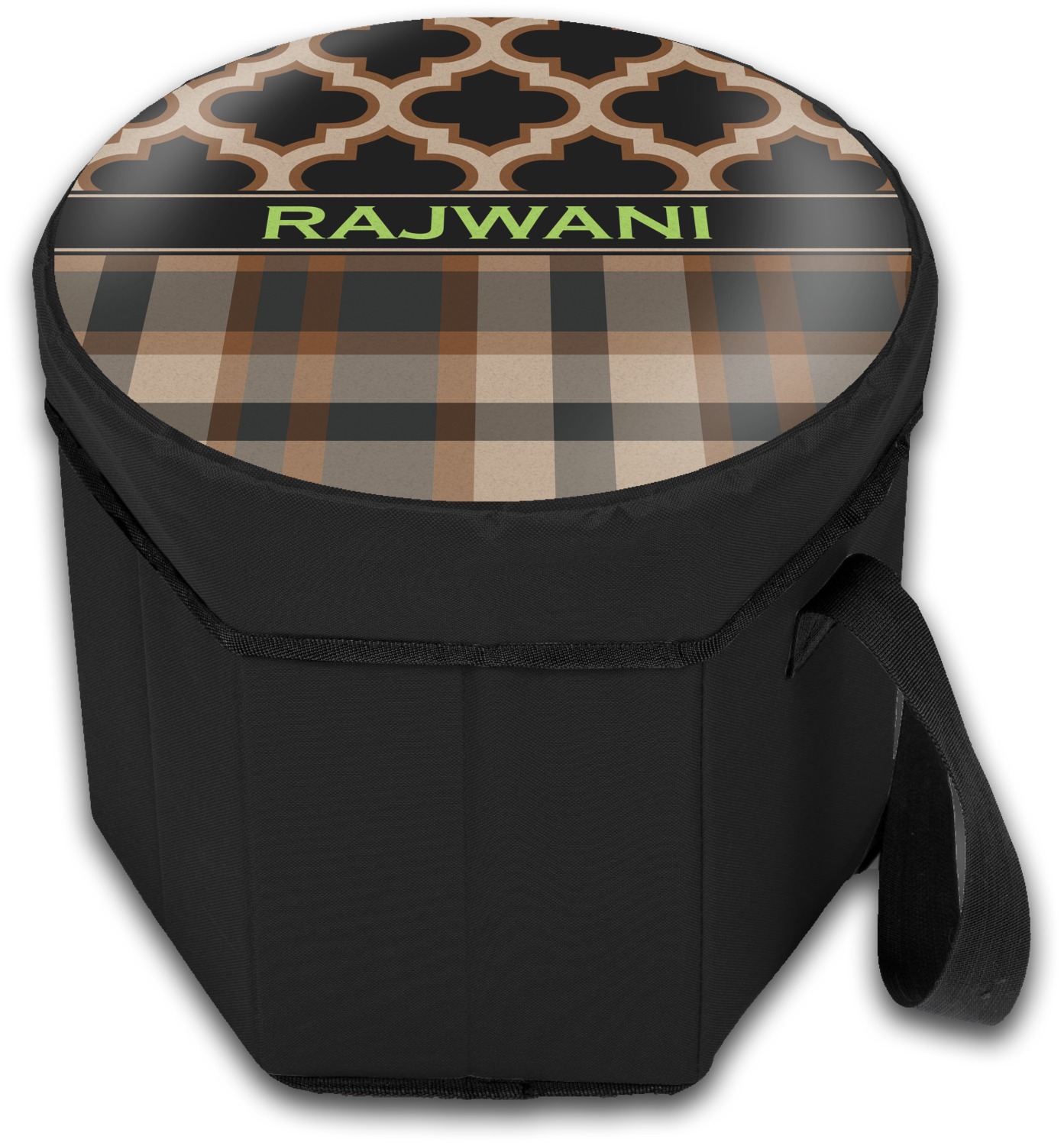 Our collapsible insulated coolers feature a unique six-sided hexagon shape, are lightweight, durable and can be turned into a seat. This cooler is fully insulated with silver foil lining to keep food and drinks hot or cold, and has a 12-quart capacity. Although this cooler collapses for easy transport, hidden inside are composition panels made of sturdy wood that give the frame strength and allow this cooler to be used as a seat. Simply sit down on the personalized cover and give your legs a break! (Maximum weight capacity of 200 pounds.)