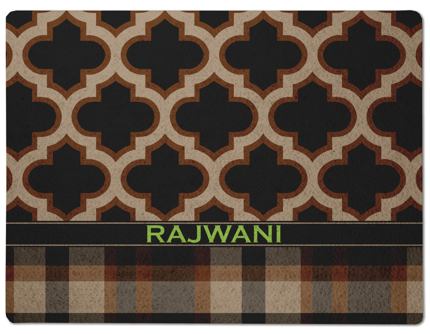 Old world and modern collide to produce this gorgeous design. The top of this design brings to life a tradition Moroccan pattern using the modern colors of brown, tan and black. The bottom half is a beautiful plaid design using the same colors from the Moroccan pattern.