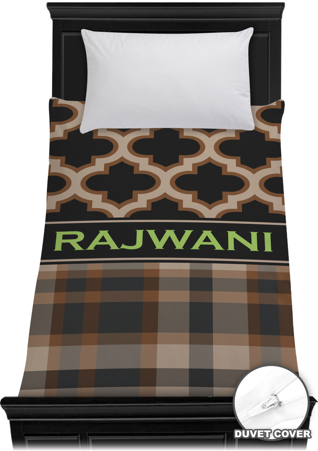 Old world and modern collide to produce this gorgeous design. The top of this design brings to life a tradition Moroccan pattern using the modern colors of brown, tan and black. The bottom half is a beautiful plaid design using the same colors from the Moroccan pattern.