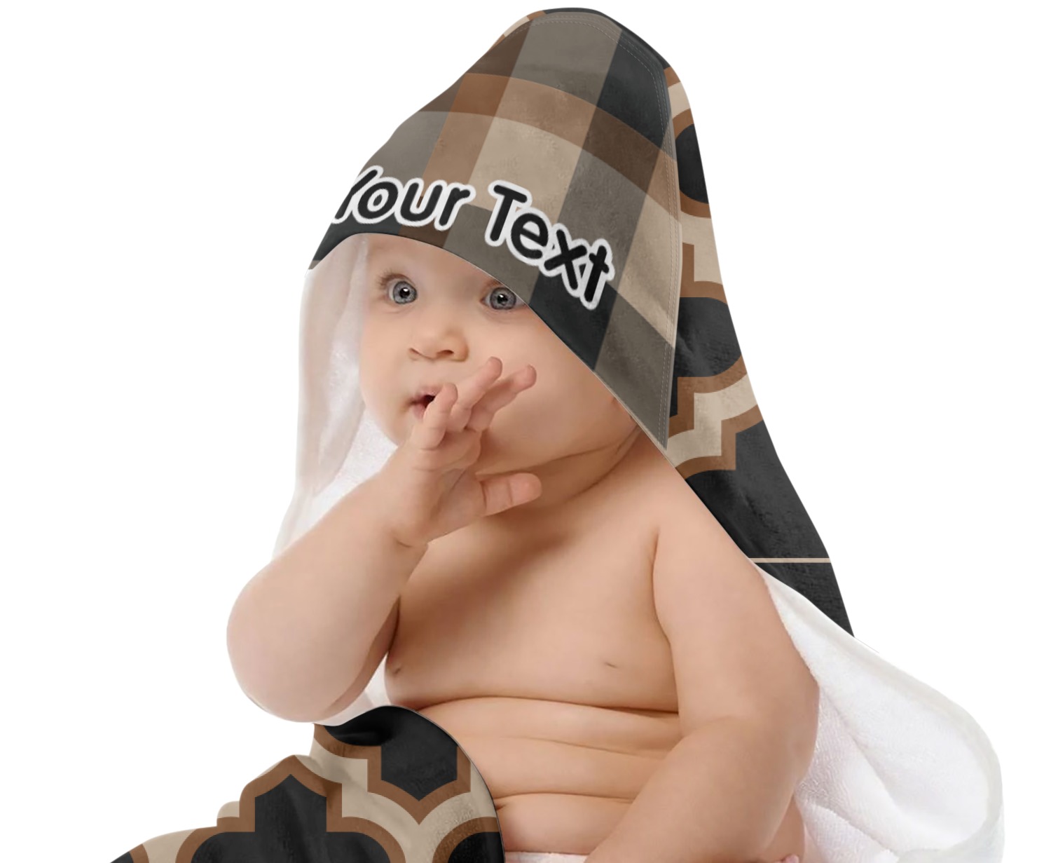 This baby towel is made with a plush microfiber velour and cotton terry. and thus will be soft and gentle against your newborn's skin, but also, very absorbent. Your customization is printed across the front & the hood, while the inside is a classy white.