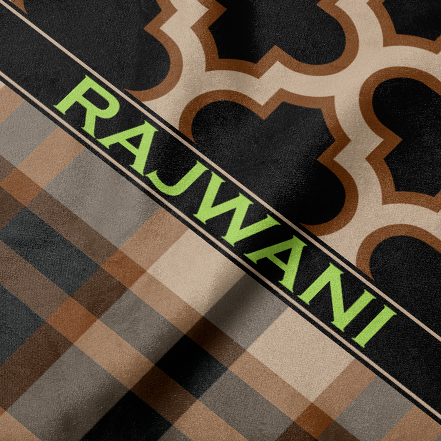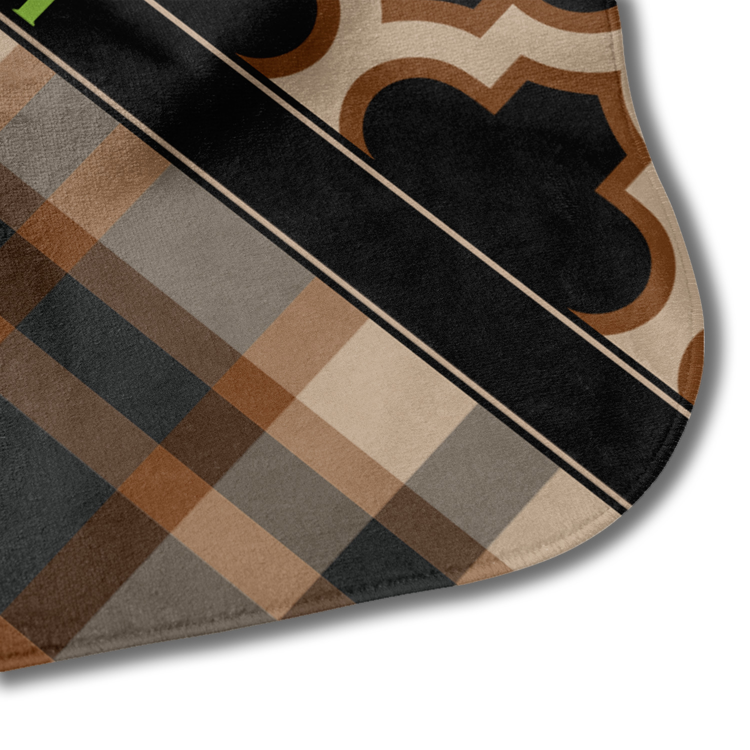 Old world and modern collide to produce this gorgeous design. The top of this design brings to life a tradition Moroccan pattern using the modern colors of brown, tan and black. The bottom half is a beautiful plaid design using the same colors from the Moroccan pattern.