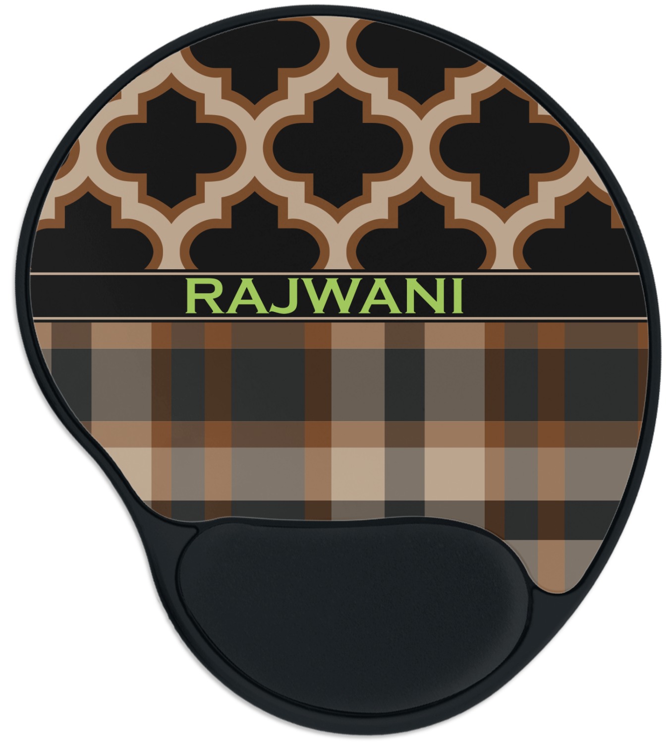 The top of these personalized mouse pads are made from a polyester, while the underside is plastic. The back of these mouse mats include rubber feet to prevent any slippage while in use. A padded wrist support, made from plush memory foam, occupies the bottom section of these computer mouse pads. Your customized design is printed onto the face of this mat, with the remaining sides and support piece colored in black. The mat itself is rounded and measures at 10.25" x 9.13".