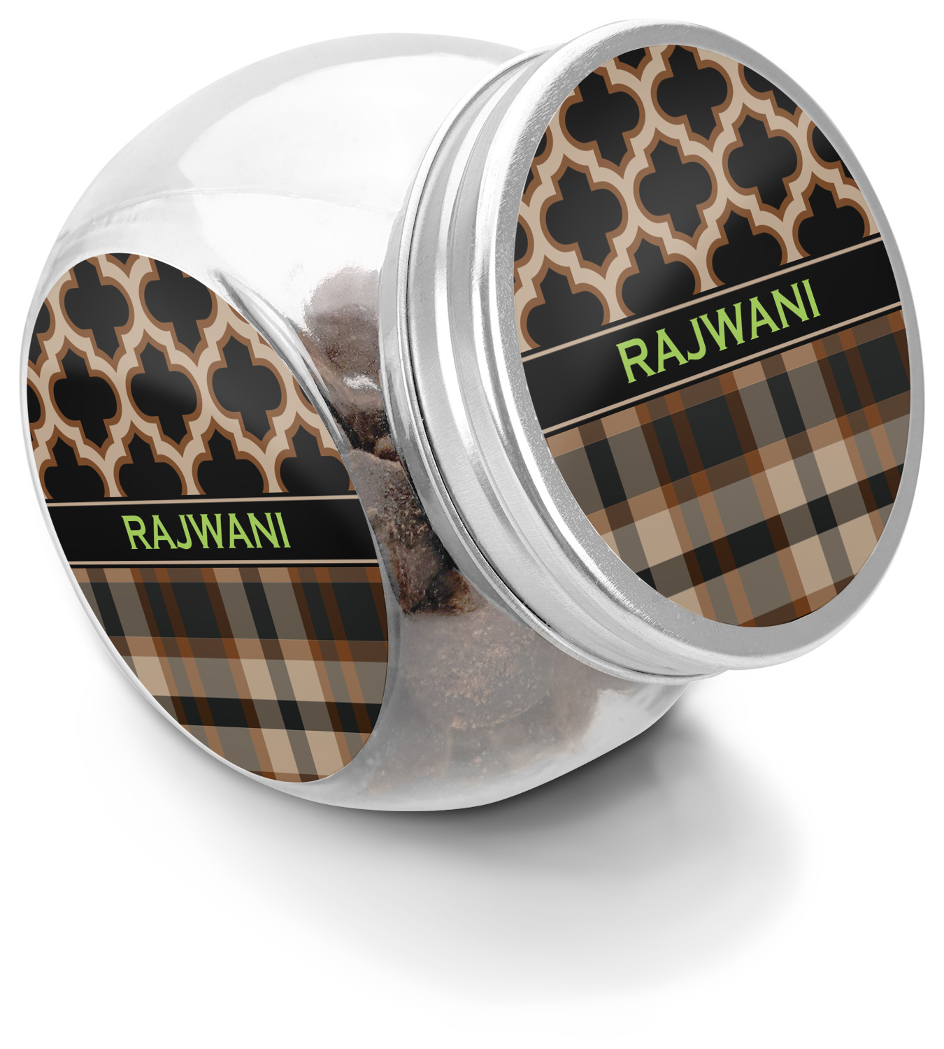 This treat jar is an excellent way to store treats for your favorite canine or feline. Moreover, their delicate, classy appearance makes them a tasteful addition to your countertop's décor. Crafted from clear glass, its unique construction and silver metal, screw-on lid allows for quick and easy access. Three, permanent, vinyl stickers are applied to both sides of the jar and lid, presenting your personalized design. The base of this glass, dog treat jar is 3.4" x 4.75", and the jar stands at 5" tall. Though on the smaller side, this jar is best suited for smaller treats or training treats.