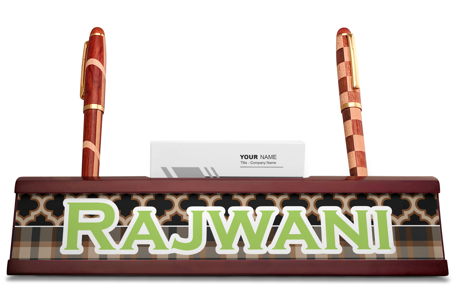 Your desk name plates are crafted from a high-quality, dark-cherry mahogany. At approximately 9.5 by 1.875 by 2.5 inches, this name plaque will fit perfectly, front and center, on your desk. Your customization spans across the entire face of the nameplate. Behind the nameplate lies a skinny slot that can fit approximately 15, traditionally-sized, business cards. You can also store your writing utensils on either side of this custom desk name plate.