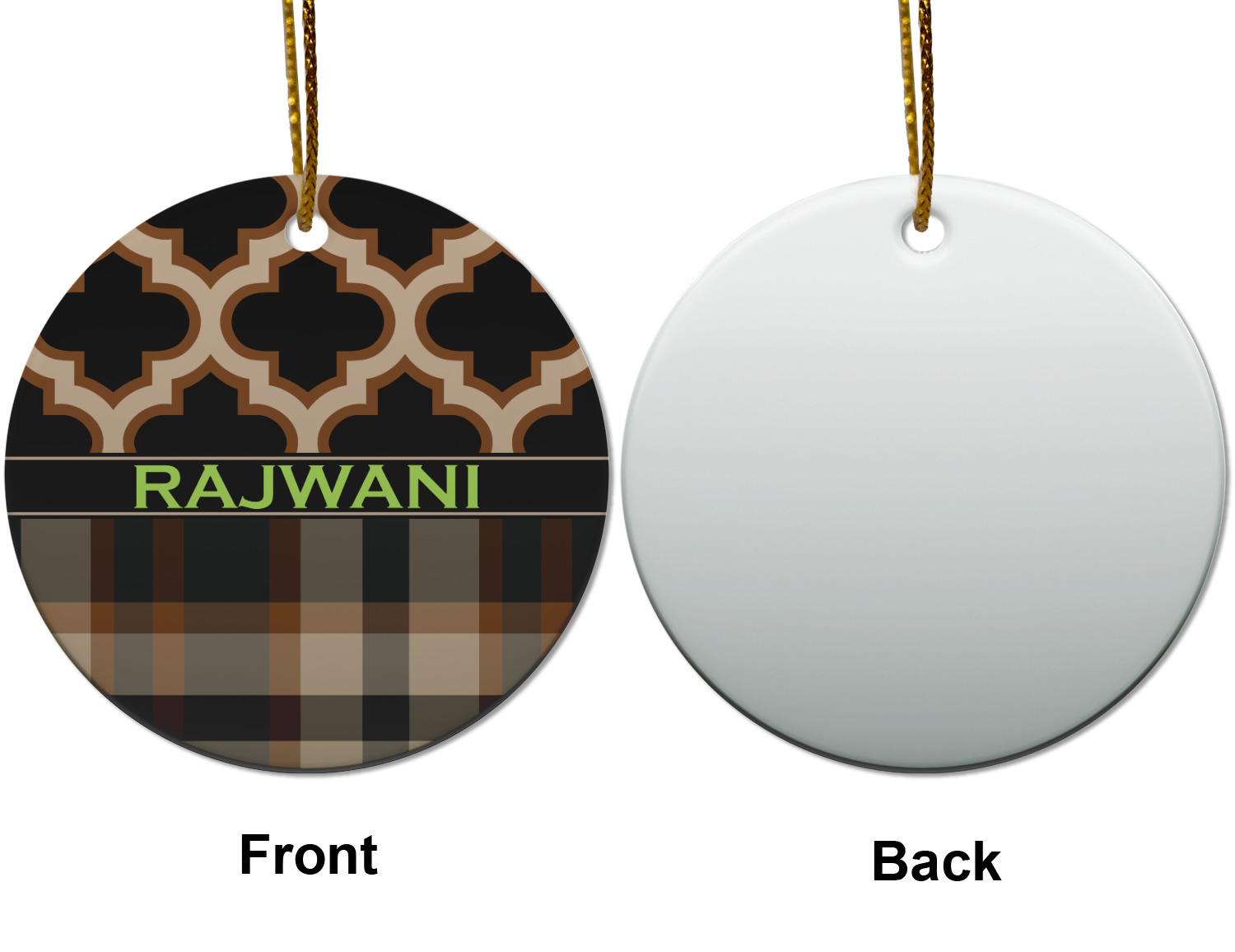 Have a happy holiday and share the joy of Christmas with your loved ones by hanging up personalized ceramic ornaments! Ornaments add a touch of who you are and the things you love onto the Christmas tree! Create custom ornaments for the kids and have them hang up their own star with their name, or pay remembrance this holiday to missed loved ones with our ceramic heart ornament. Browse many of our unique designs and customize them the way you'd like! From monograms, logos, and patterns, we have it all! You can even upload a photo of your family for us to print onto the ornament! The possibilities are endless!