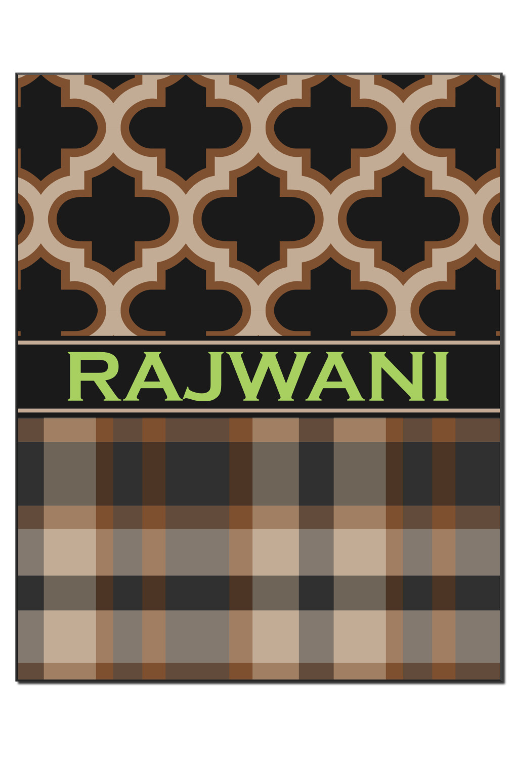 Old world and modern collide to produce this gorgeous design. The top of this design brings to life a tradition Moroccan pattern using the modern colors of brown, tan and black. The bottom half is a beautiful plaid design using the same colors from the Moroccan pattern.