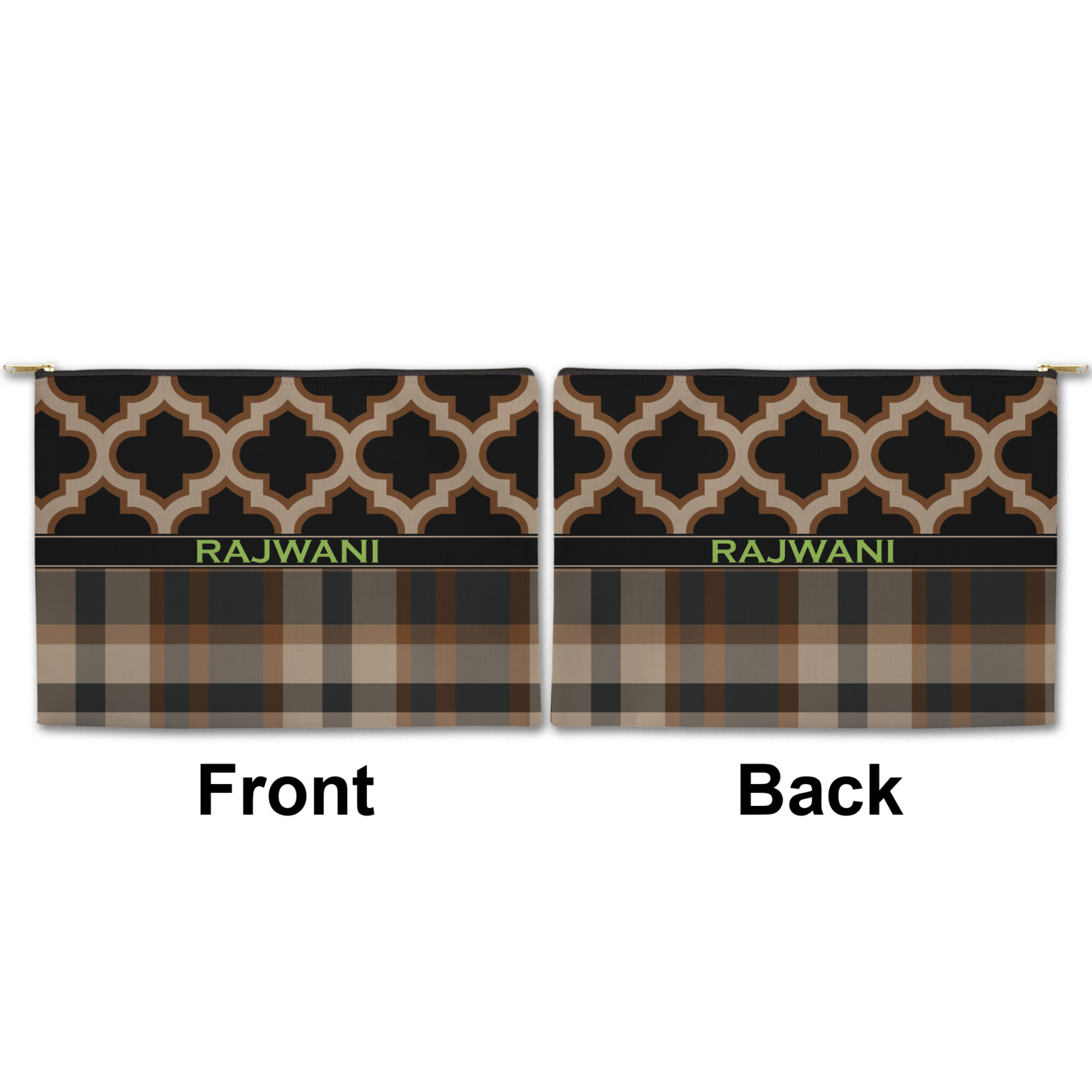 You can design both the front and the back of the pouch - same design, two complementary designs or two totally different designs - the choice is yours! We offer many different personalization styles i.e. name, name & initial, monograms - so the choice to personalize is also yours.