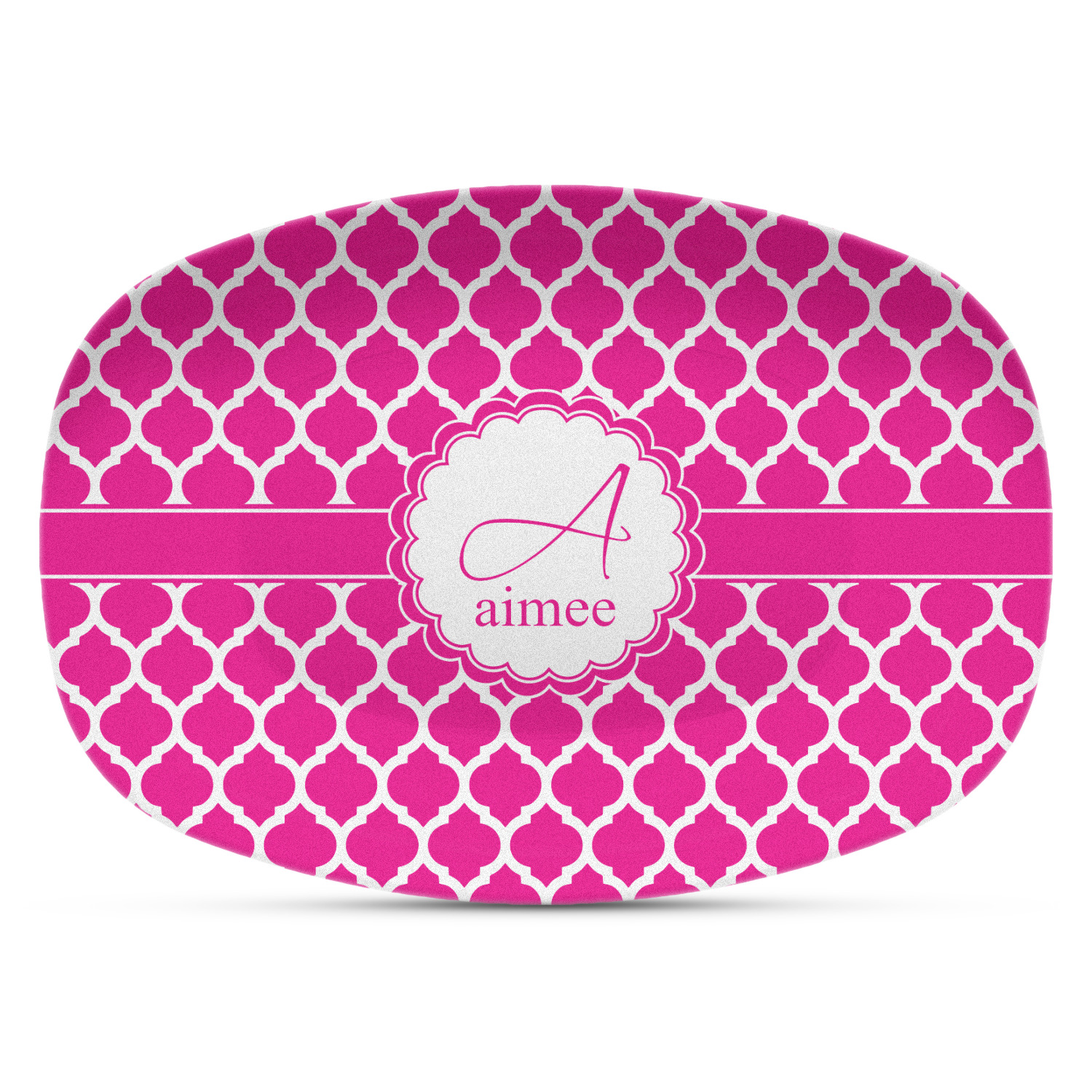 These serving platters are made from a composite, thermo-set, polymer plastic that gives it the versatility, durability, and weight of a melamine platter, without any of the downsides of melamine. These personalized platters, can withstand temperatures up to 250 degrees Fahrenheit, for up to 60 minutes. No harmful chemicals, such as BPA, formaldehyde, and DEHPs were used in the manufacturing of this product. This large serving platter measures at 14" x 10.25", and is spacious enough to hold any of your appetizers or bite-sized desserts. The platter exhibits your personalization across the entirety of its front.