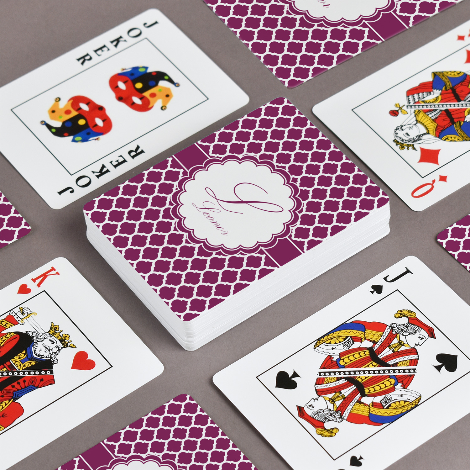 Here at YouCustomizeIt, you can customize your playing cards by uploading your own design, photo, or logo. We have design templates that you can customize by changing the patterns, colors, graphics, personalization styles, etc. - using our free for you to use in our design elements library.