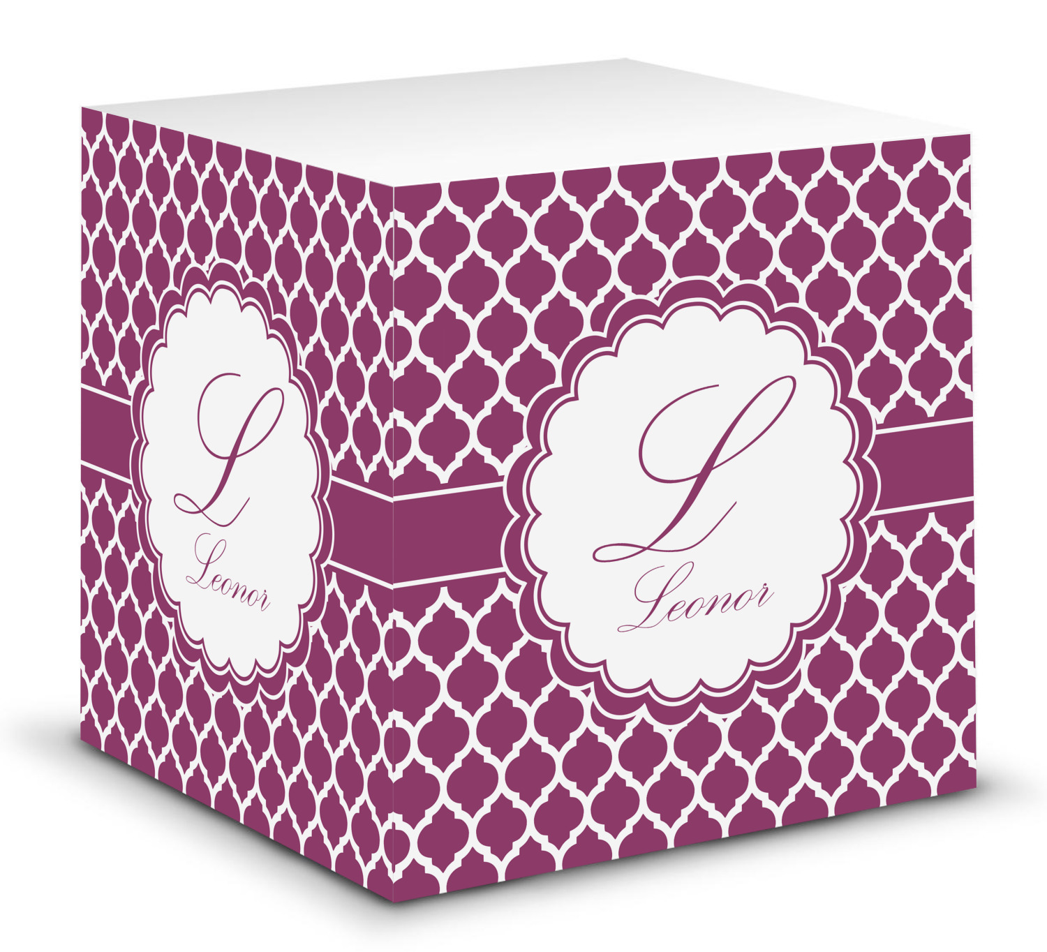 This note cube features 700 sheets of matte, white paper. Each sheet measures at 3.5 by 3.5 inches and has an adhesive strip at its top. Your personalized design is displayed on all four edges of the sticky pad.
