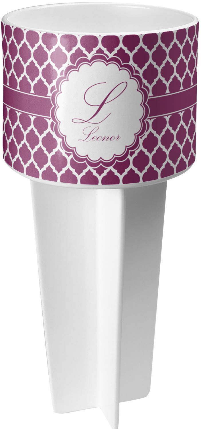 This cup holder has a large stake at its bottom that anchors it to the sand or ground below, while the cup holder rests above the stake. The entire drink holder is made of durable plastic and displays your customization around the cup holder portion. We sell these personalized beach spikers in two different colors: black and white.