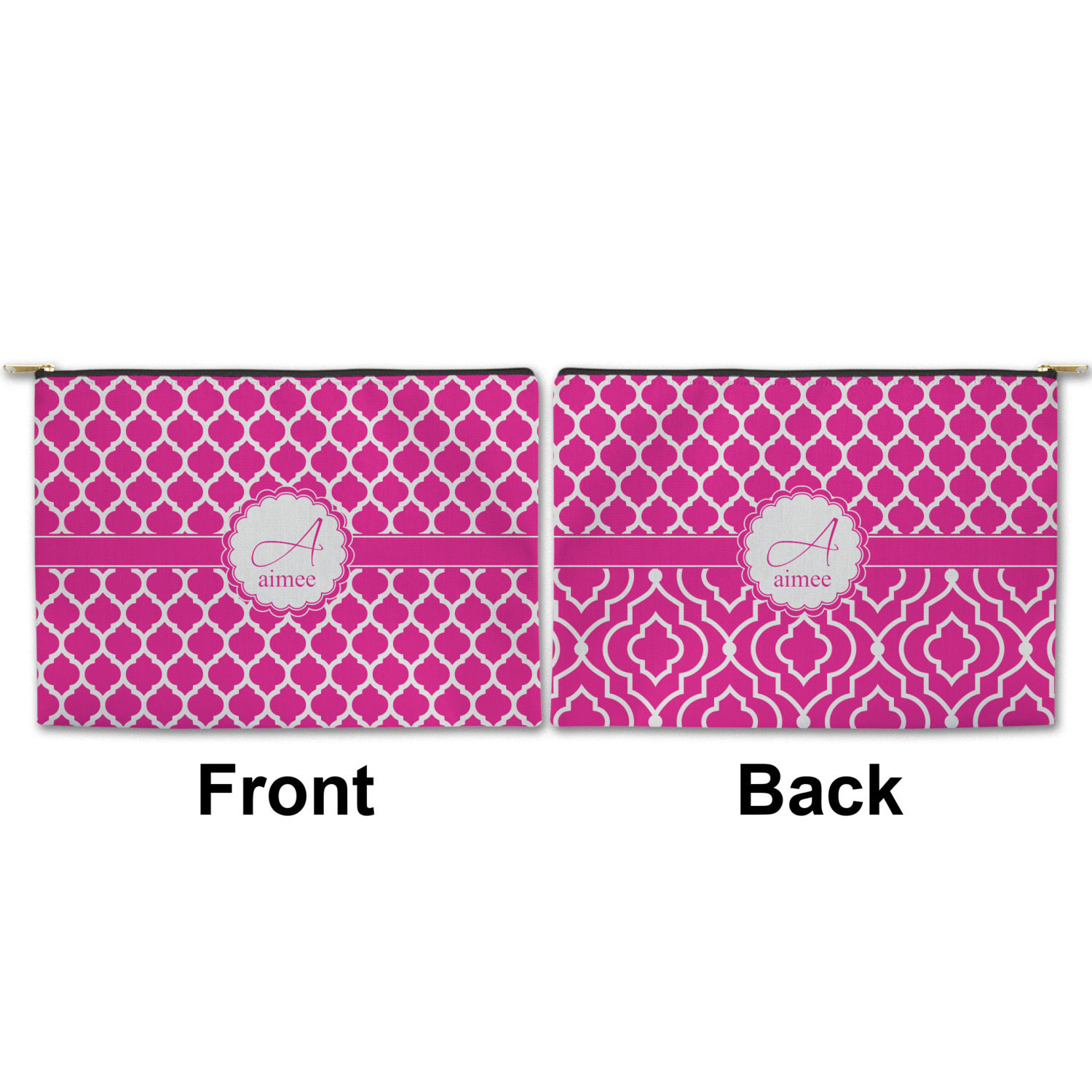 You can design both the front and the back of the pouch - same design, two complementary designs or two totally different designs - the choice is yours! We offer many different personalization styles i.e. name, name & initial, monograms - so the choice to personalize is also yours.