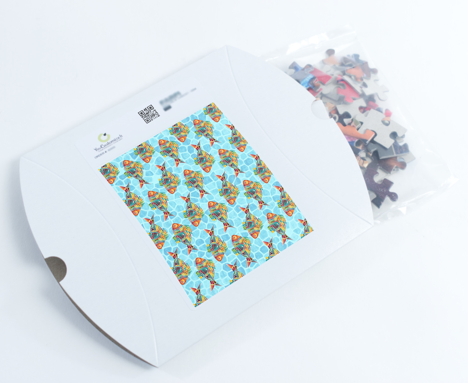 You can also upload your logo or art that you or your kids drew. To create more challenging jigsaw puzzles, you can create a pattern from with your logo or artwork. You can also add other elements such as text or personalization.