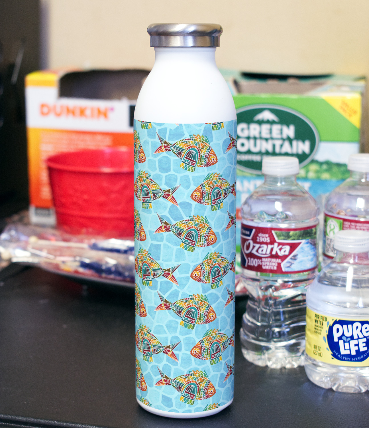 With the double wall insulated construction this bottle will keep drinks cold for 24 hours and hot for 12 hours. The large size allows for a beautiful large artwork space to allow you to make this bottle all your own.