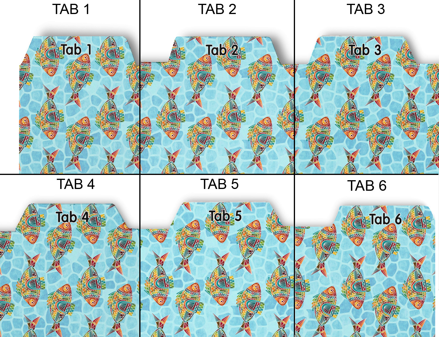 Whether you use binders at school or at work, we have designs to suit all of them. Available in 5 or 6 tab sets, you are sure to find a set to suit your needs. The back of each one is white and can be used to take notes, write vital information on, etc.