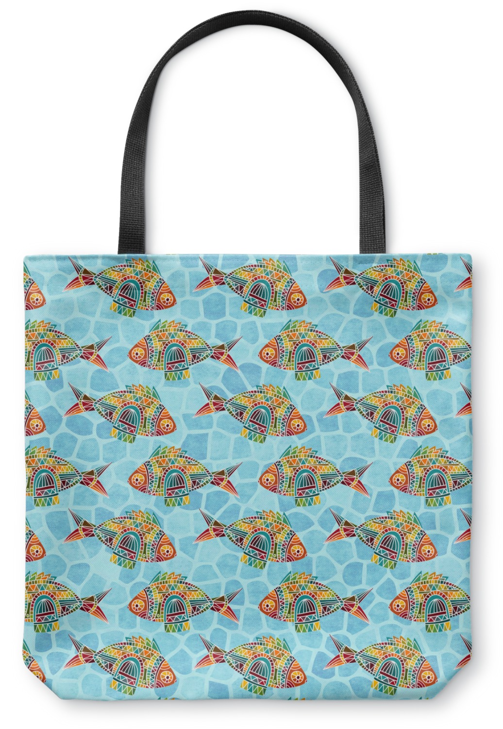 Looking for a fun, but still mature look for your beach house? This pattern with colorful mosaic fish with in a swimming pool tiles in the background is a great pattern to decorate with in a beach house or pool house or even just for pool bathroom . This pattern is also available with waves and a solid color background